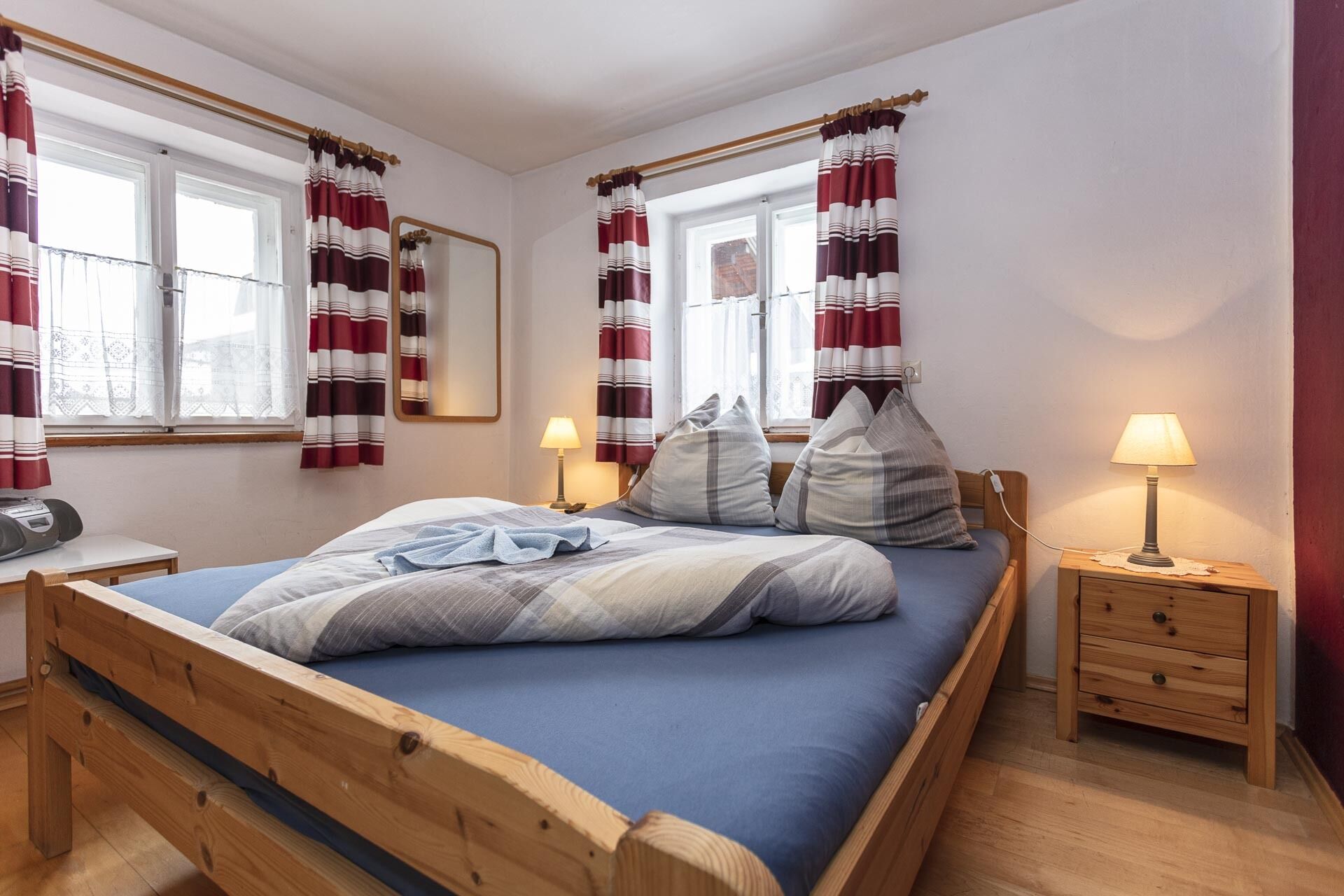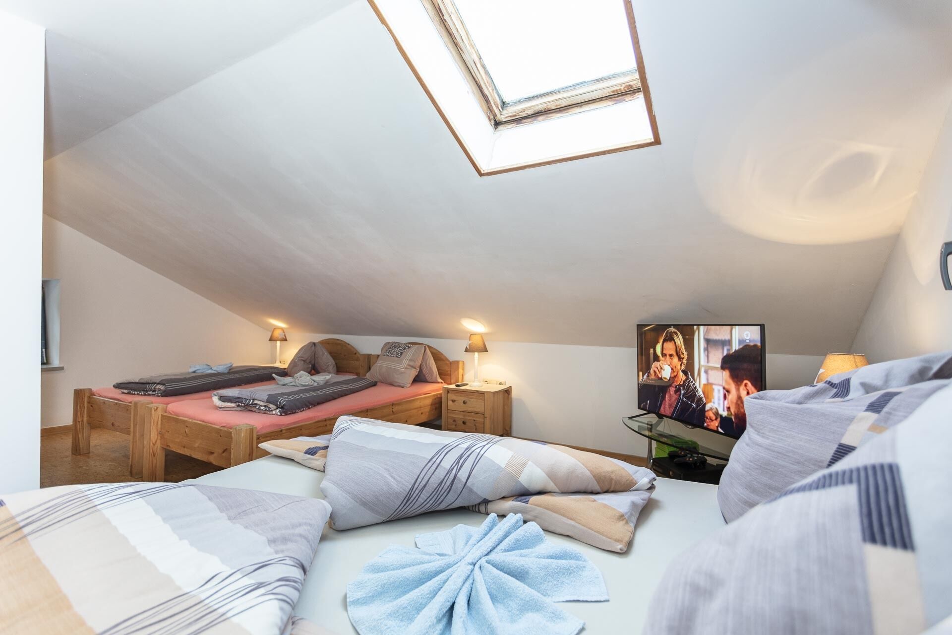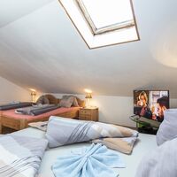 In the attic there is a large bedroom with a double bed and two