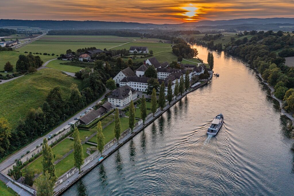 In Büsingen, you have the option to stop at the Lido beach. Here you can cool off in the Rhine or dine at the restaurant. In Büsingen, it is also worth taking a small detour to the small, very impressive over 1000-year-old Romanesque mountain church of St. Michael. From Büsingen, you hike on the scenic route always along the Rhine to Schaffhausen. Once you arrive in Schaffhausen, stroll through the beautiful old town up to the Schaffhausen train station.