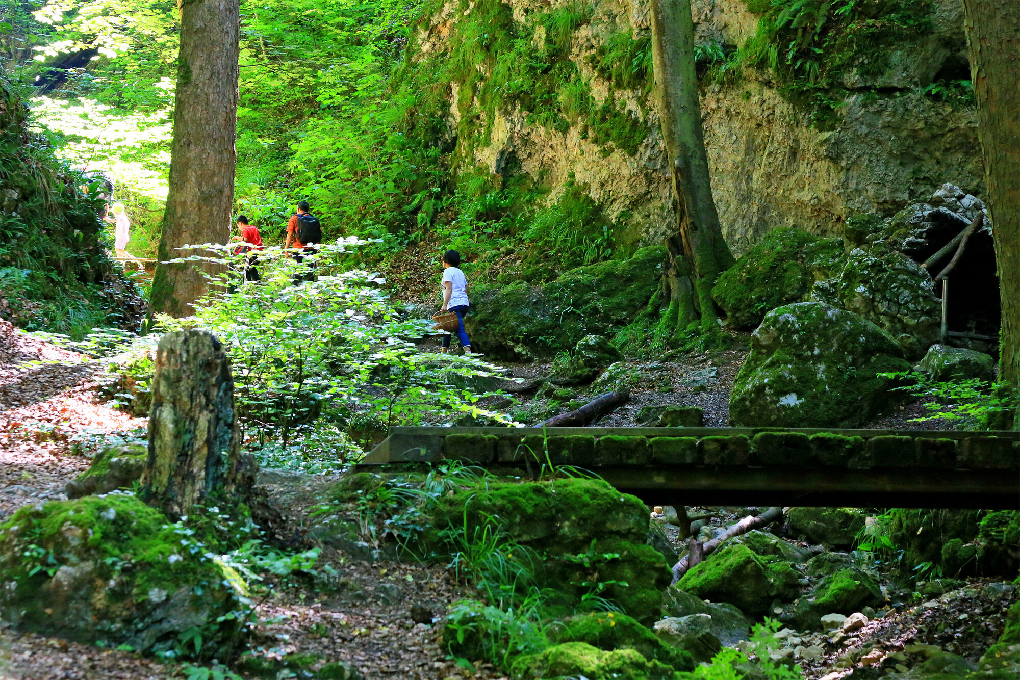 Kurz nach der Weggabelung Mettli passieren wir die Grenze zum Kanton Solothurn und wandern südlich von Hofstetten weiter am Waldrand entlang zum Wegweiser Standort Chälengraben am oberen Zugang der imposanten Schlucht. An der nächsten Verzweigung der Wanderwege ist der höchste Punkt der Etappe mit 606 m ü.NN. erreicht. Geradeaus liegt die Burg Rotberg. Um 1200 als Ritterburg erbaut, ist sie seit 1935 eine einmalige Herberge für Jugendliche, die hier in stilechter Atmosphäre fürstliche Tage erleben können. Nicht weit von der Jugendherberge Rotberg entfernt ist die bekannte Wallfahrtskirche Mariastein. Sie ist nach Einsiedeln der zweitwichtigste Wallfahrtsort der Schweiz. Unterhalb der heutigen Benediktiner-Klosterkirche liegt ihr Herz: die Gnadenkapelle. 59 Stufen führen in die unterirdische Grotte mit der lächelnden Madonna.