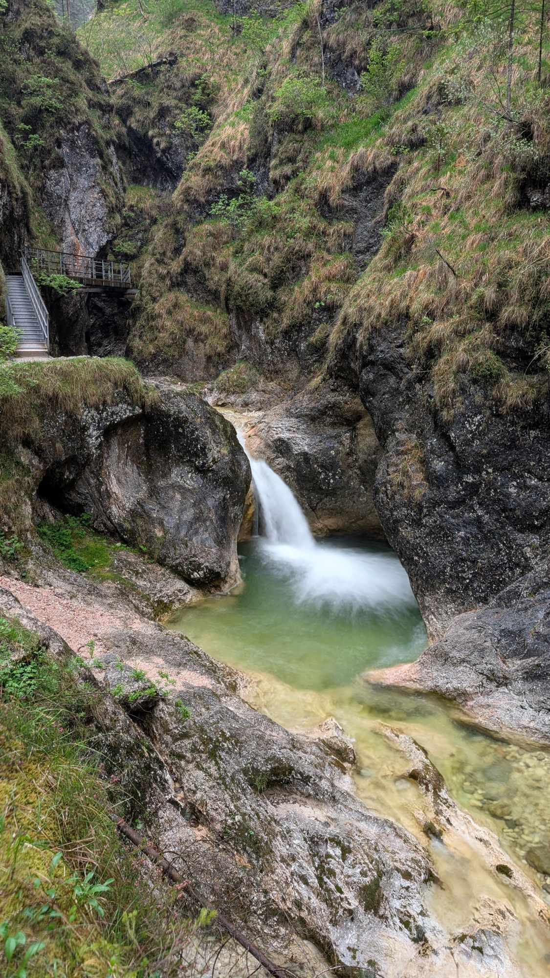 Der gut ausgebaute Steig durch die Klamm bietet aufregende Ausblicke auf den reißenden Wildbach mit beeindruckenden Wasserfällen und riesigen Gumpen.