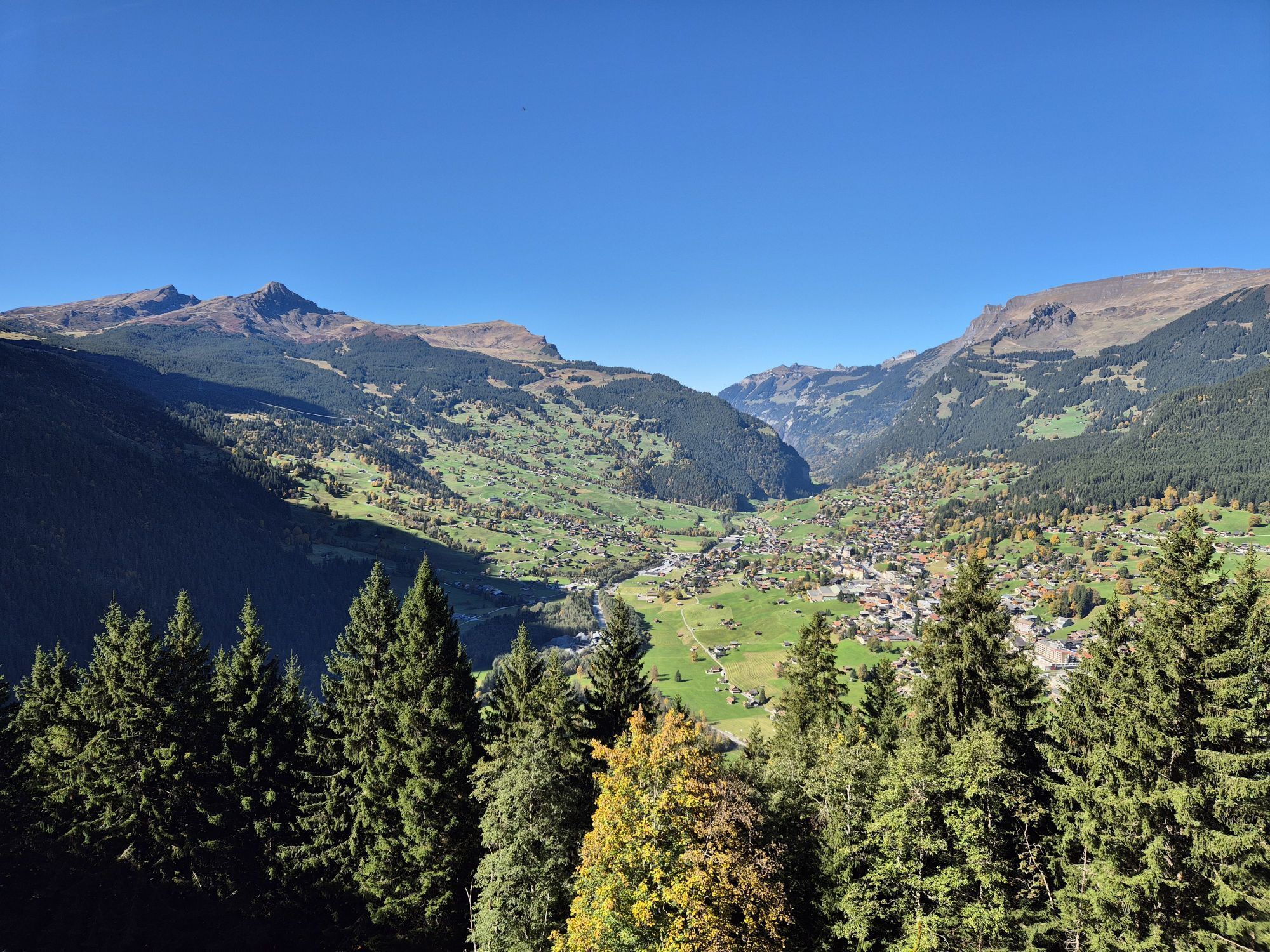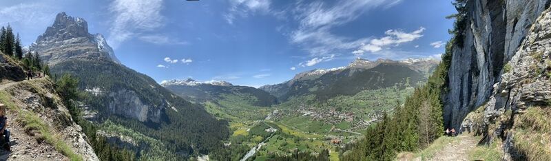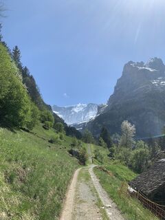 Die Tour startet beim Parkplatz Gletscherschlucht und führt über einen Pfad hinter dem Restaurant in den Wald. Hier geht es dann stetig bergauf anhand schöner Waldwege im Schatten. Es folgt die Überquerung der Gletscherschlucht. Sehr beeindruckend. Danach kann man einen kurzen Abstecher zum Marmorbruch machen und weiter durch den Wald steil nach oben zur Pfingstegg. Hier können die Kinder spielen die Eltern im Restaurant ein kühles Getränk zu sich nehmen mit einer atemberaubenden Aussicht über Grindelwald. Der Abstieg ist sehr steil über die Wiese und dann wieder ein Pfad im Wald. Der Abschluss läuft man flach Bergab durch Wiesen zum Parkplatz.
