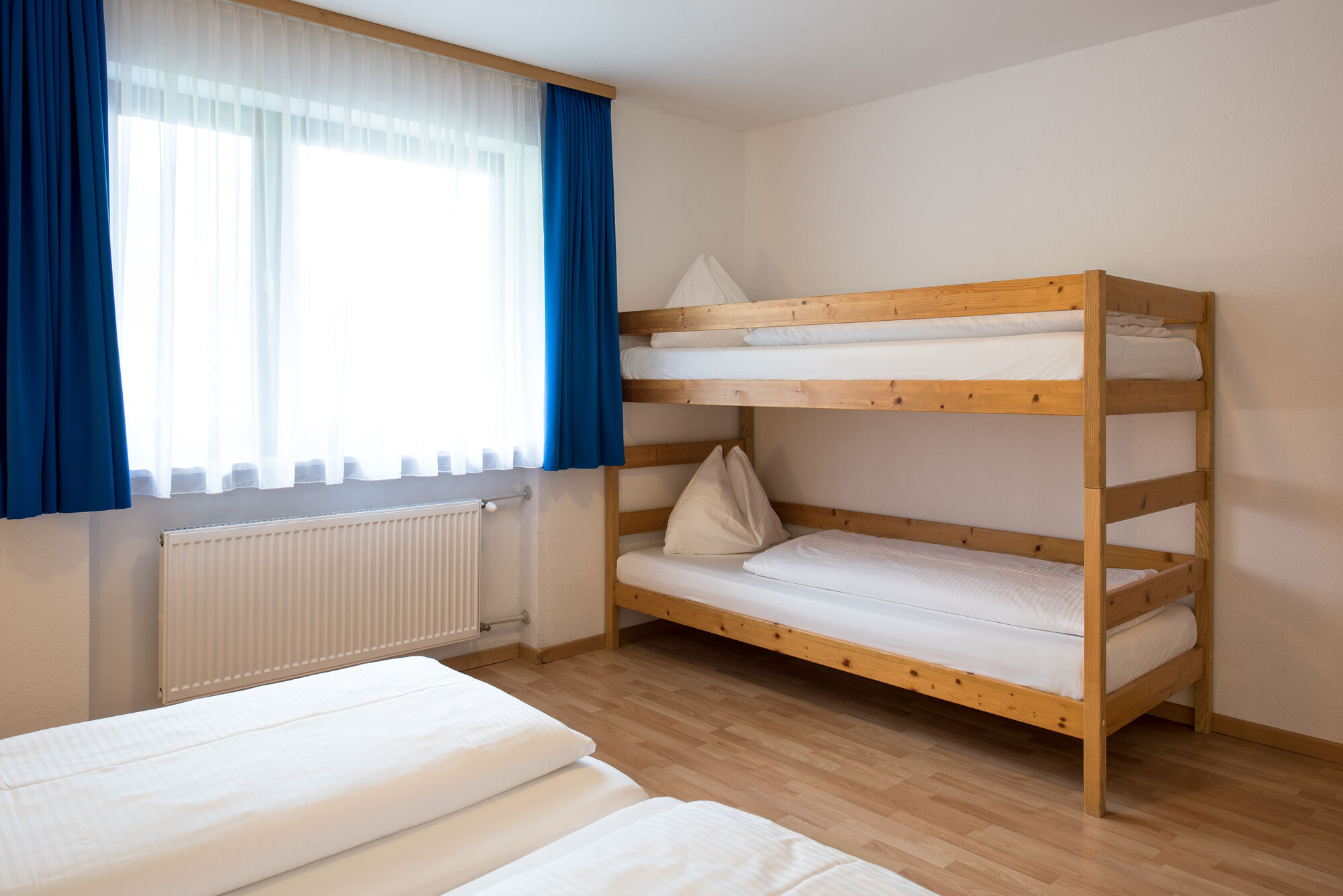 - Schlafzimmer mit Doppelbett und einem Stockbett
