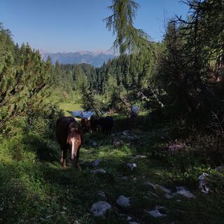 At Forca Piccola, therefore, turn right and descend to Casera Colmajer; from here we close the loop along the comfortable forestry road that takes us back to the Casera Nauleni clearing and finally to the Tita Piaz refuge following the same path as the ascent.