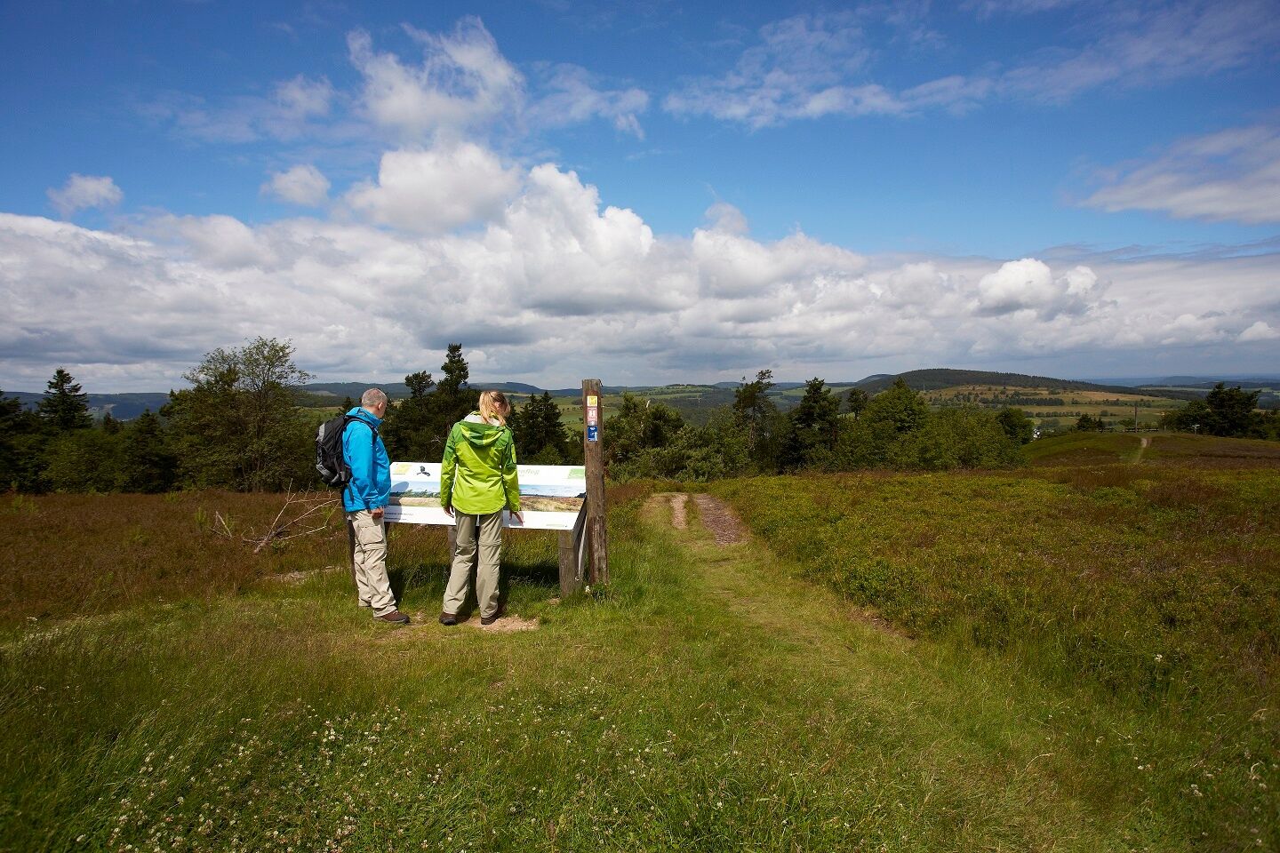 Durch Wiesen und Heide führt der Höhenflug entlang des Skiliftes bis zum Usseler Kreuz, biegt hier rechts und führt über einen schmalen Pfad hinauf zur Schutzhütte. Von hier hat man eine fantastische Aussicht über das hessische Bergland bis zum Habichtswald und die Warburger Börde.
