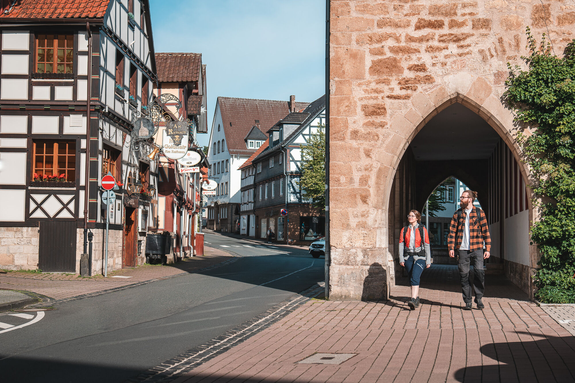 Auf der Spitze des Eisenberges steht der zum Gedächtnis an den Fürsten von Waldeck 1905 errichtete Georg-Viktor-Aussichtsturm, von dem Sie einen herrlichen Rundumblick u.a. bis zum Herkules bei Kassel und dem Aussichtsturm auf dem Dommel bei Willingen genießen können. Auch hier erklären Panoramatafeln die Punkt in der Landschaft. Neben dem Besucherbergwerk und dem Aussichtsturm kann auf dem Eisenberg auch noch die Reste eines Schlosses besichtigt werden. Das ehemalige Grafenschloss wurde 1649 nach Blünderungen und Brand von der gräflichen Familie aufgegeben und seit dem 18. Jahrhundert als Steinbruch genutzt. Erst zwischen den Jahren 1974 und 1986 wurden die Reste des einstigen Schlosses wieder freigelegt. Über einen alten Hohlweg steigt der Höhenflug vom Eisenberg hinab zum Einstiegsportal. Über diesen „Arme-Sünder-Weg“ wurden Verurteilte einst zur Hinrichtungsstätte auf dem Klusenberg bei Goldhausen geführt. Am Einstiegsportal endet der Sauerland-Höhenflug. Ein 4,5 km langer, schwarz markierter Zugangsweg bringt Sie vom Einstiegsportal in die Innenstadt von Korbach. Der Weg lohnt sich, denn die „Goldstadt“ Korbach verfügt über eine herrliche Altstadt. Mittelalterliche Festungsanlagen, steinerne Lagerhäuser, prächtiges Fachwerk, gotische Kirchen und das Rathaus mit Roland erwarten Sie in Hessens einziger Hansestadt.