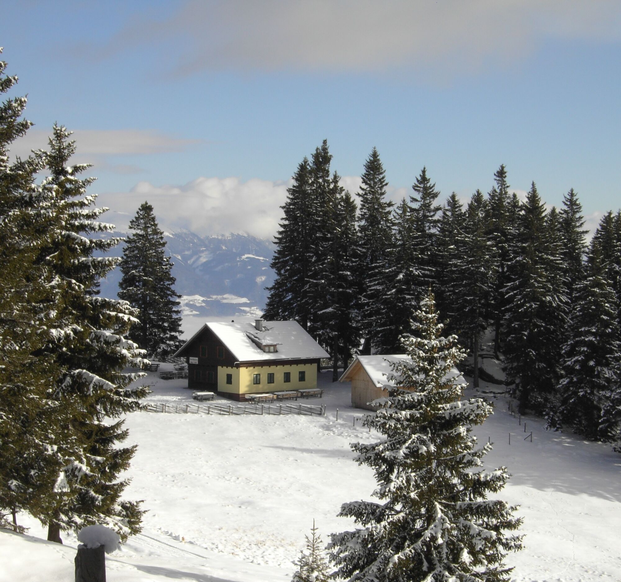 This wonderful, not too steep and family-friendly natural toboggan run is winter fun for the whole family. Since it is a natural toboggan run, the path can also be partially icy in winter. Caution when ascending or returning with or without sled. The Saualpe is also a popular destination in winter for friends of ski or snowshoe tours.