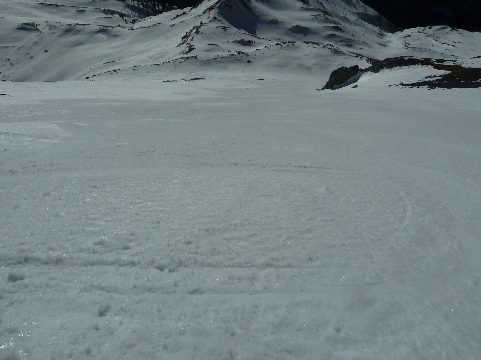 Abfahrt: Über die weiten Hänge bis zur Forststraße und über diese zum Ausgangspunkt zurück.