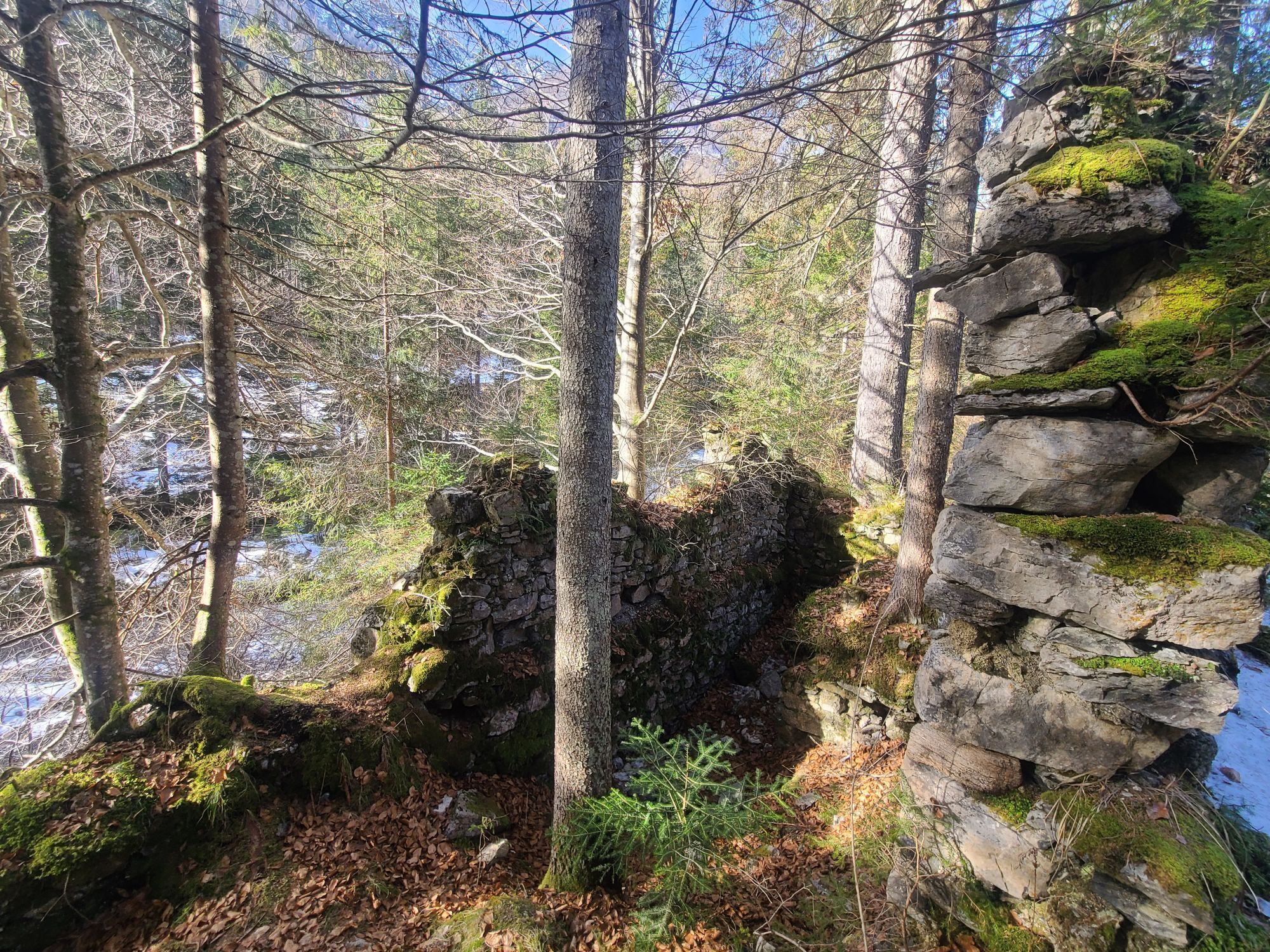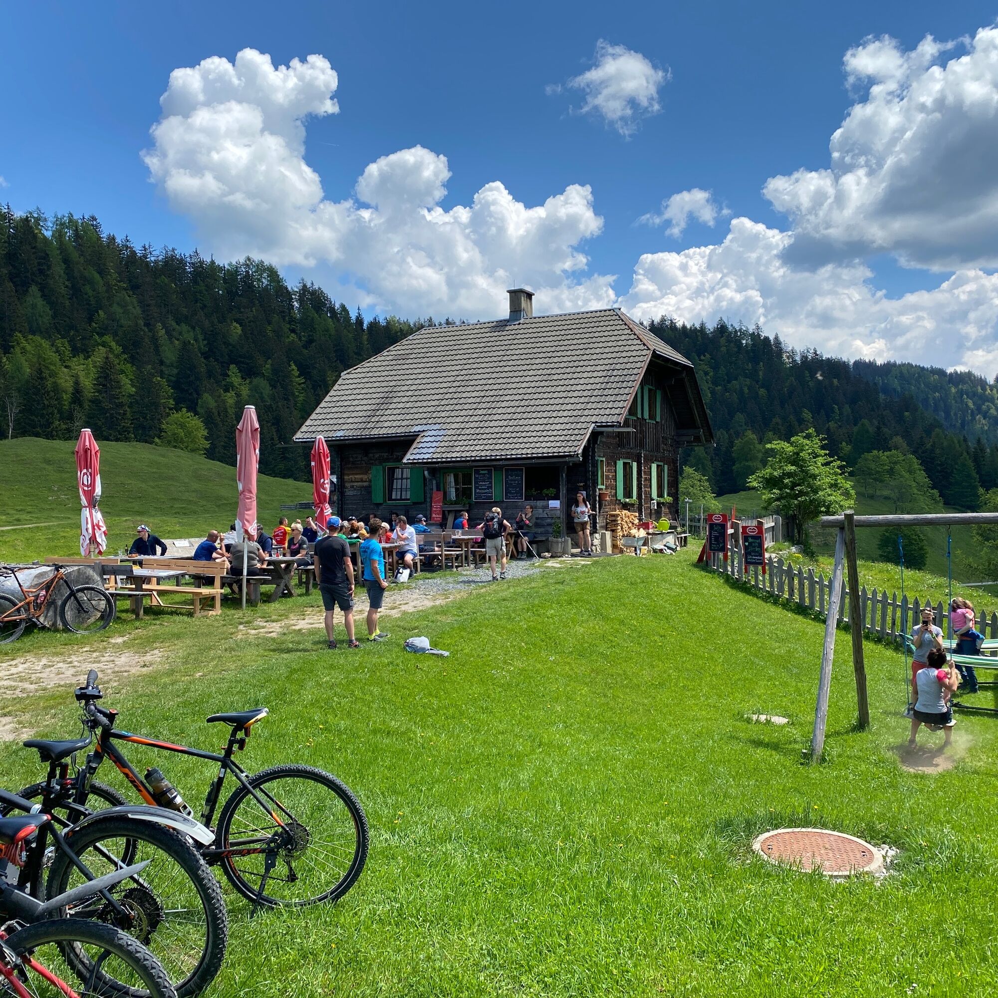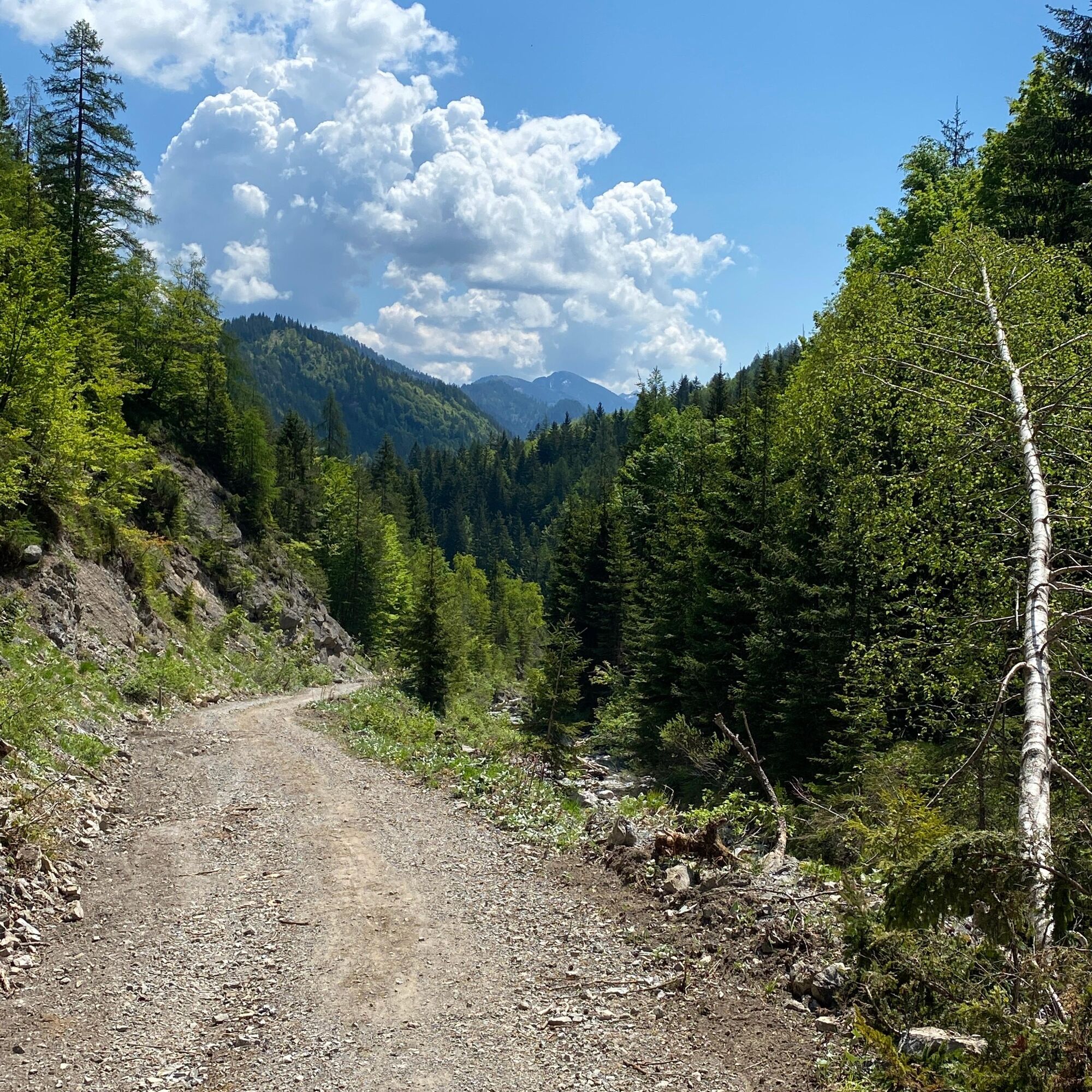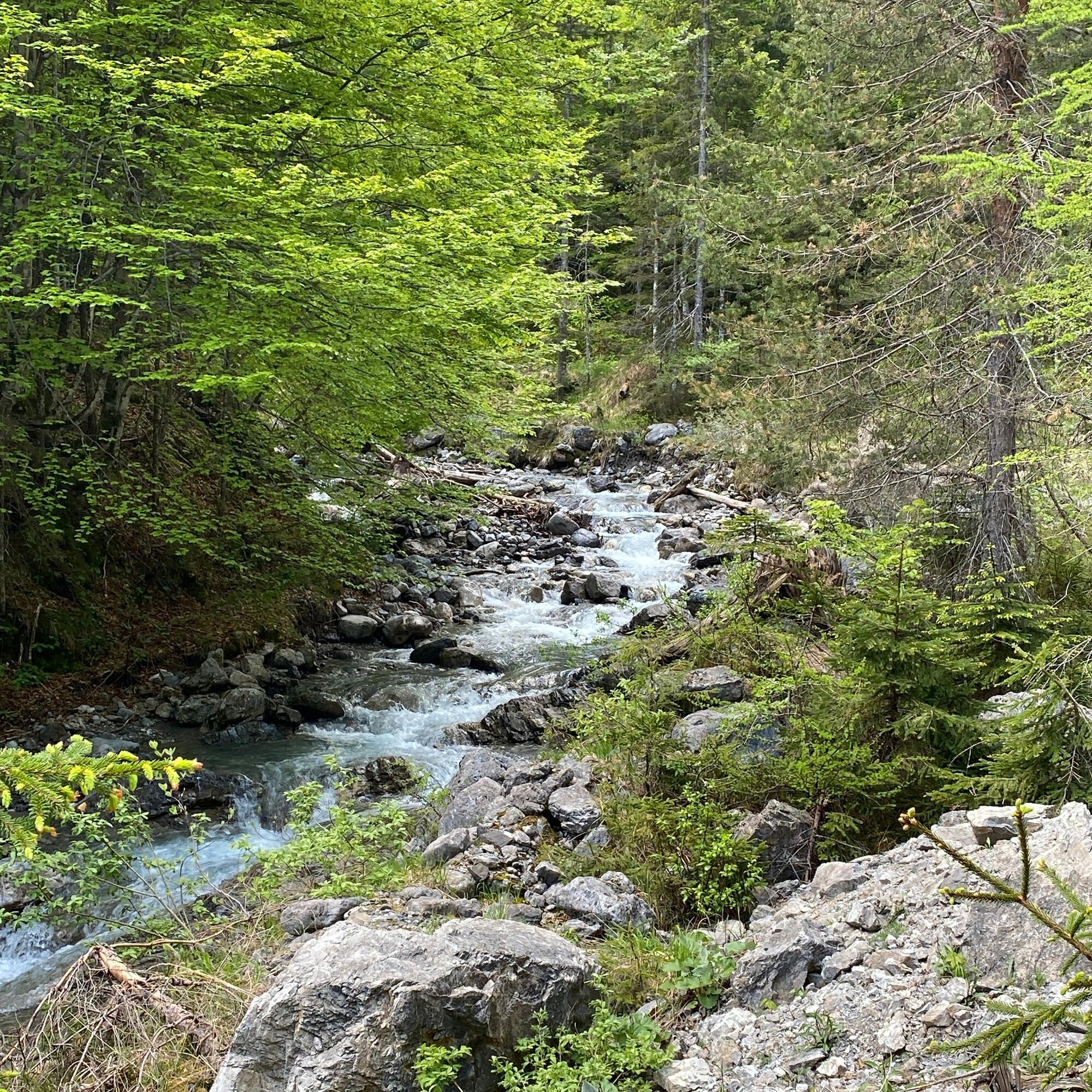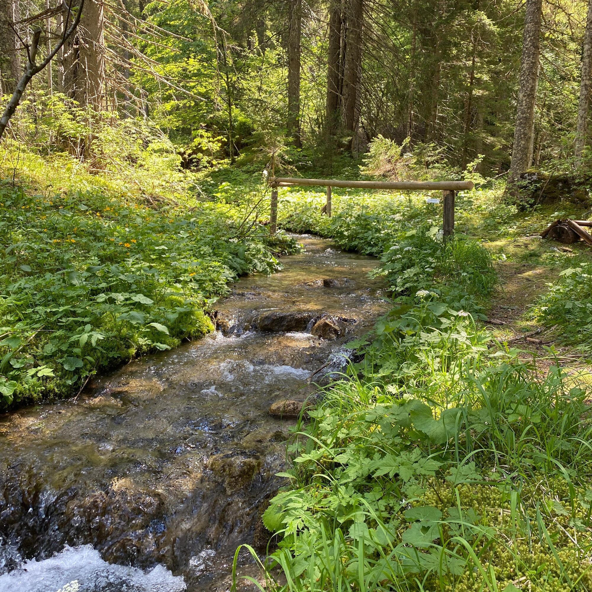After the municipal office in Weißbriach, still before the bridge turn left along the stream to the Gössering gorge, past the old ruins to the "Großen Hammer" ruin. From here there are two options to reach the Waisacher Alm (operated).