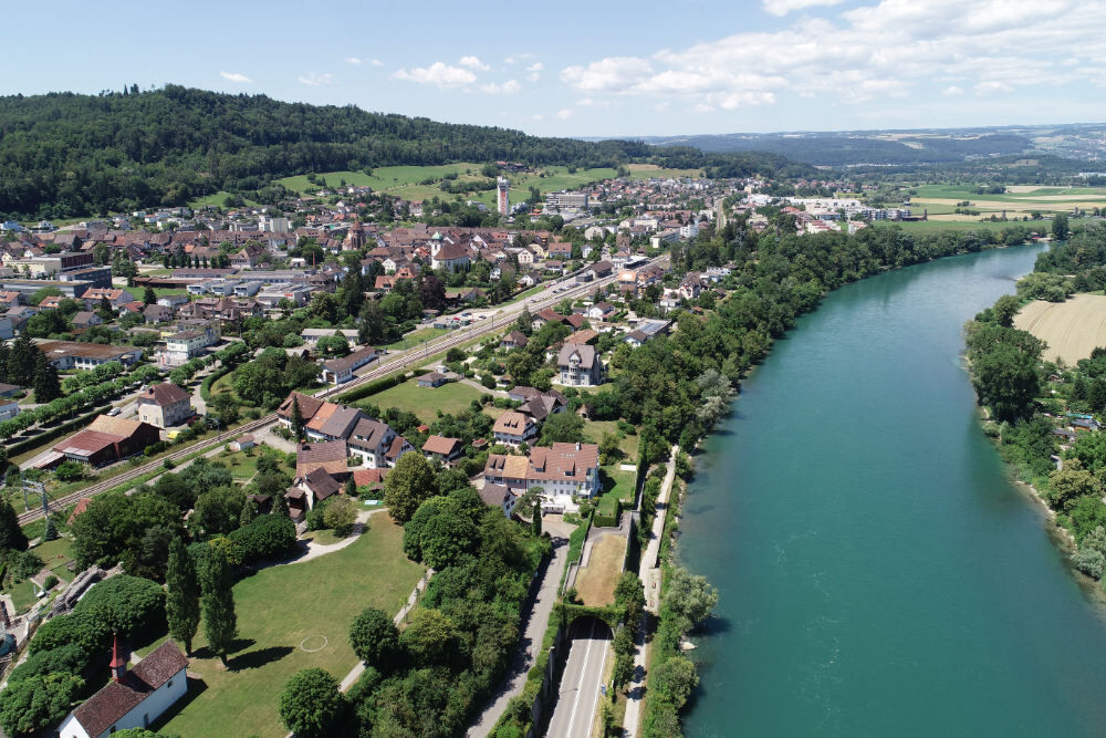 Bad Zurzach train station - descent to the Rhine bank - upstream along the Rhine - Rekingen - Reckingen power plant - Mellikon - Rümikon - Schwarzwasserstelz - Kaiserstuhl - ascent through the town to the SBB train station.
