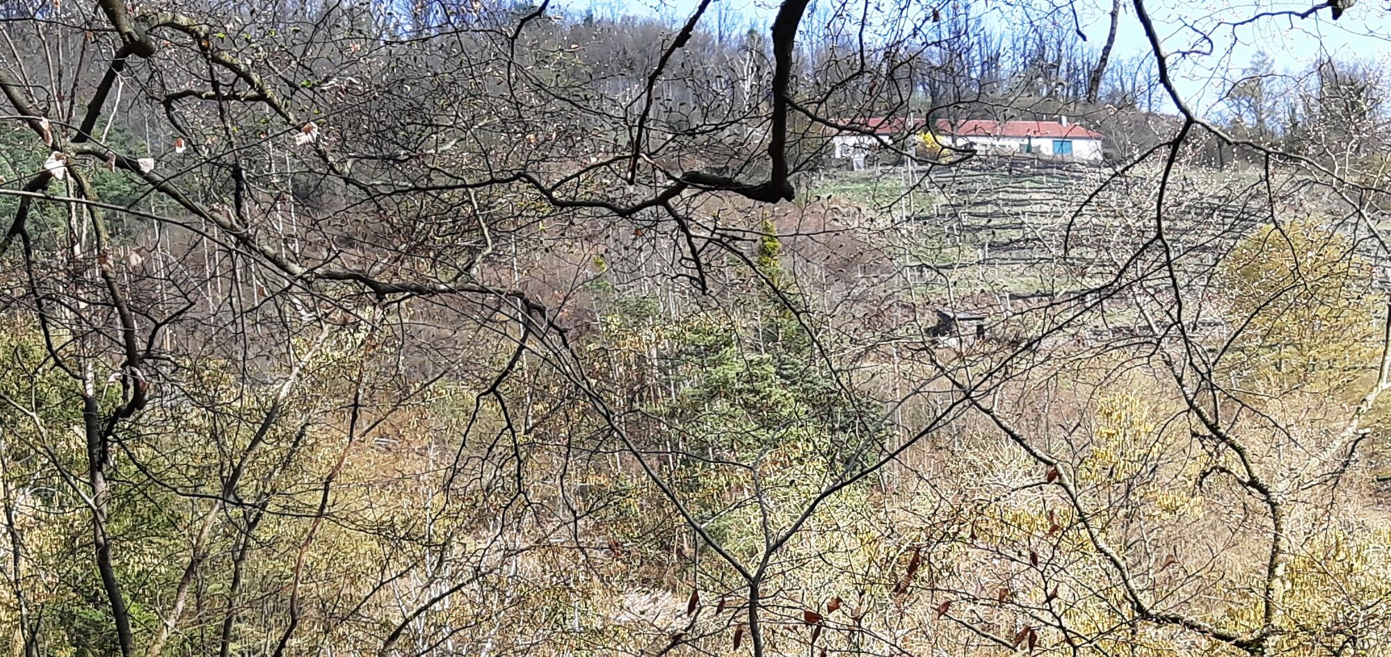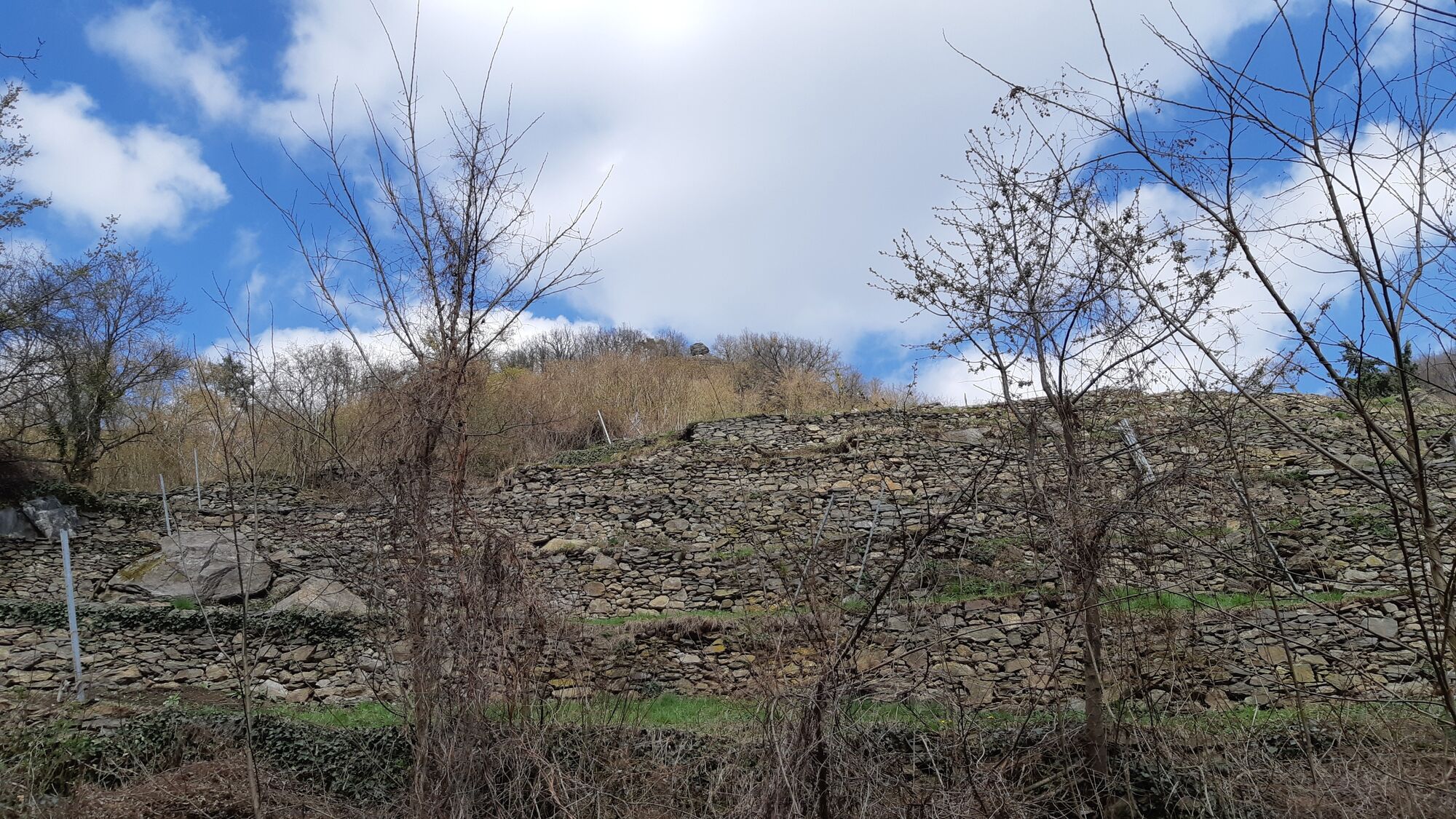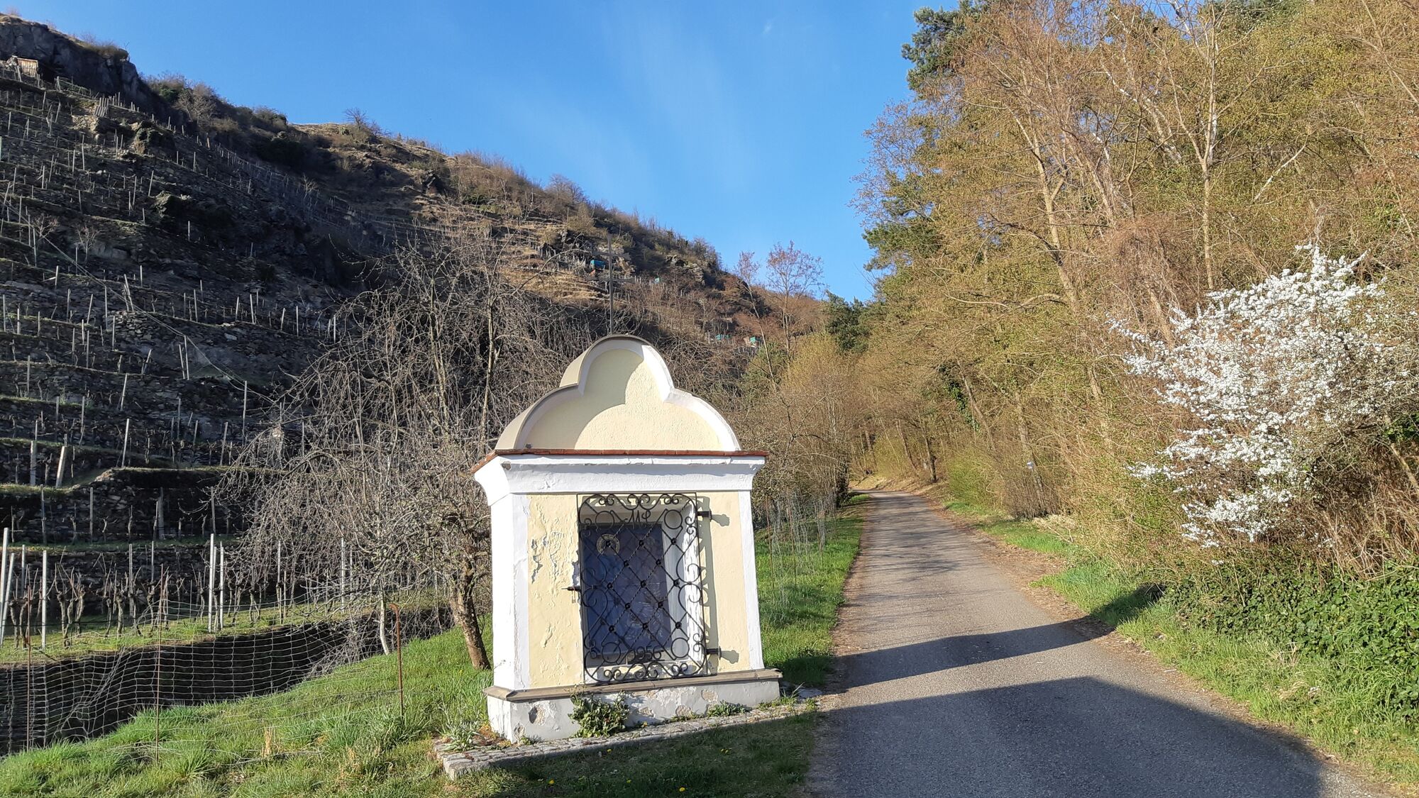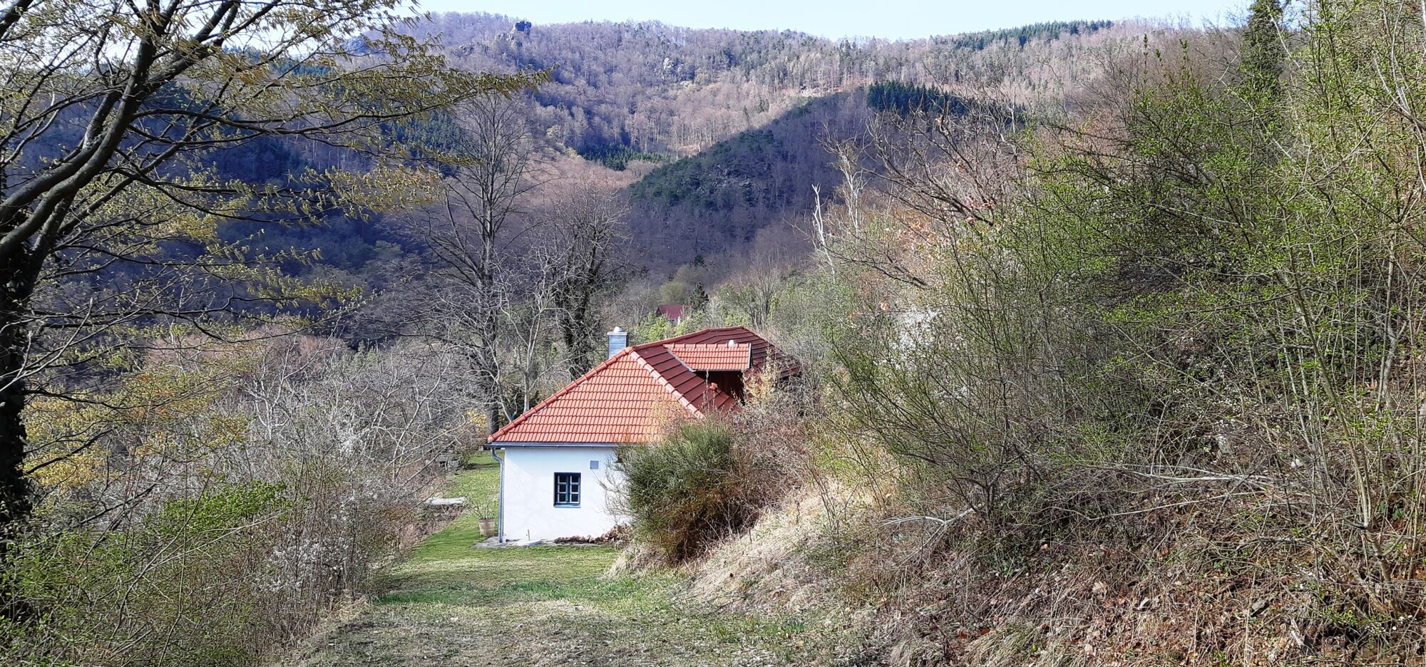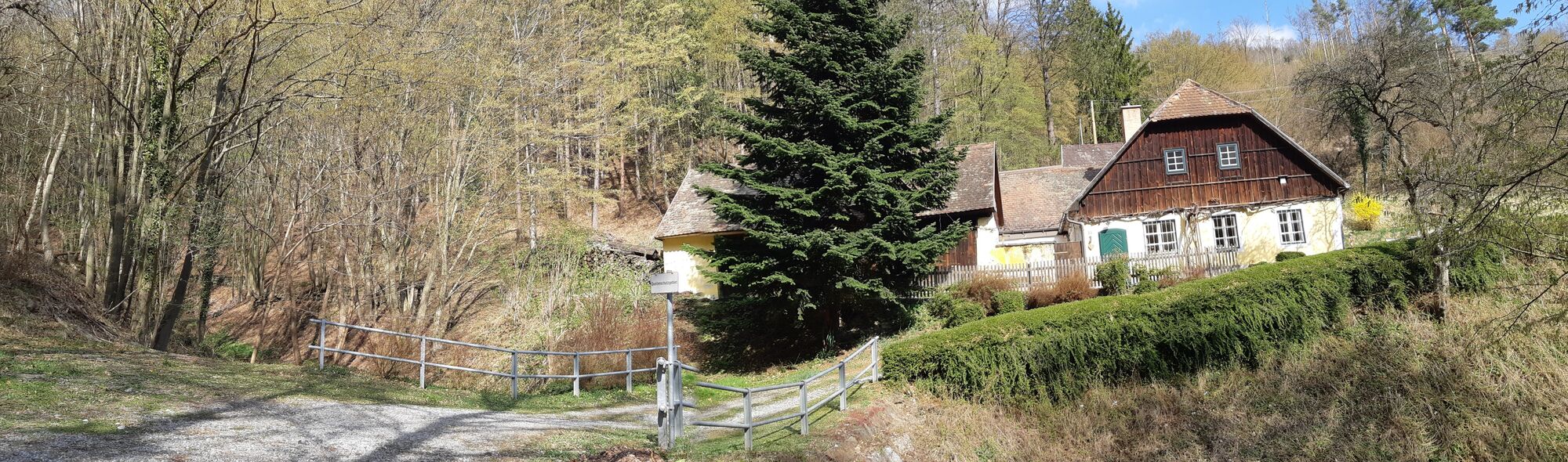 Wanderbeginn ist Weißenkirchen-Frauengärten an der Nordostseite am Beginn nahe Heudürrgraben (Bushaltestelle Dürnstein Heudürr). Erst geht es über die Wachaubahn und im Heudürrgraben auf der asphaltierten Straße hoch, an den Dürnsteiner Waldhütten Häusern Nr.4 und Nr.25 vorbei linksseitig die Kehre nehmen (linksseitig von Haus Nr.15 und die Rechtskehre vor Haus Nr.16). Weiter rauf über meine Rechtskehre auf der jetzt geschotterten Straße unterhalb der Waldhütten Nr.13 danach oberhalb der Waldhütte Nr.13 vorbei und an der nächsten Linkskurve weiter hoch.