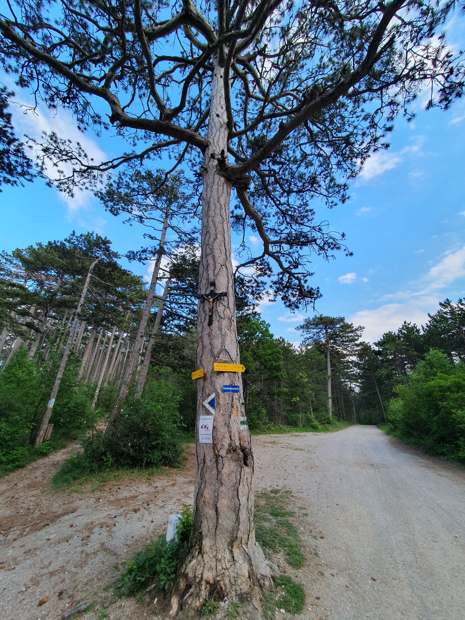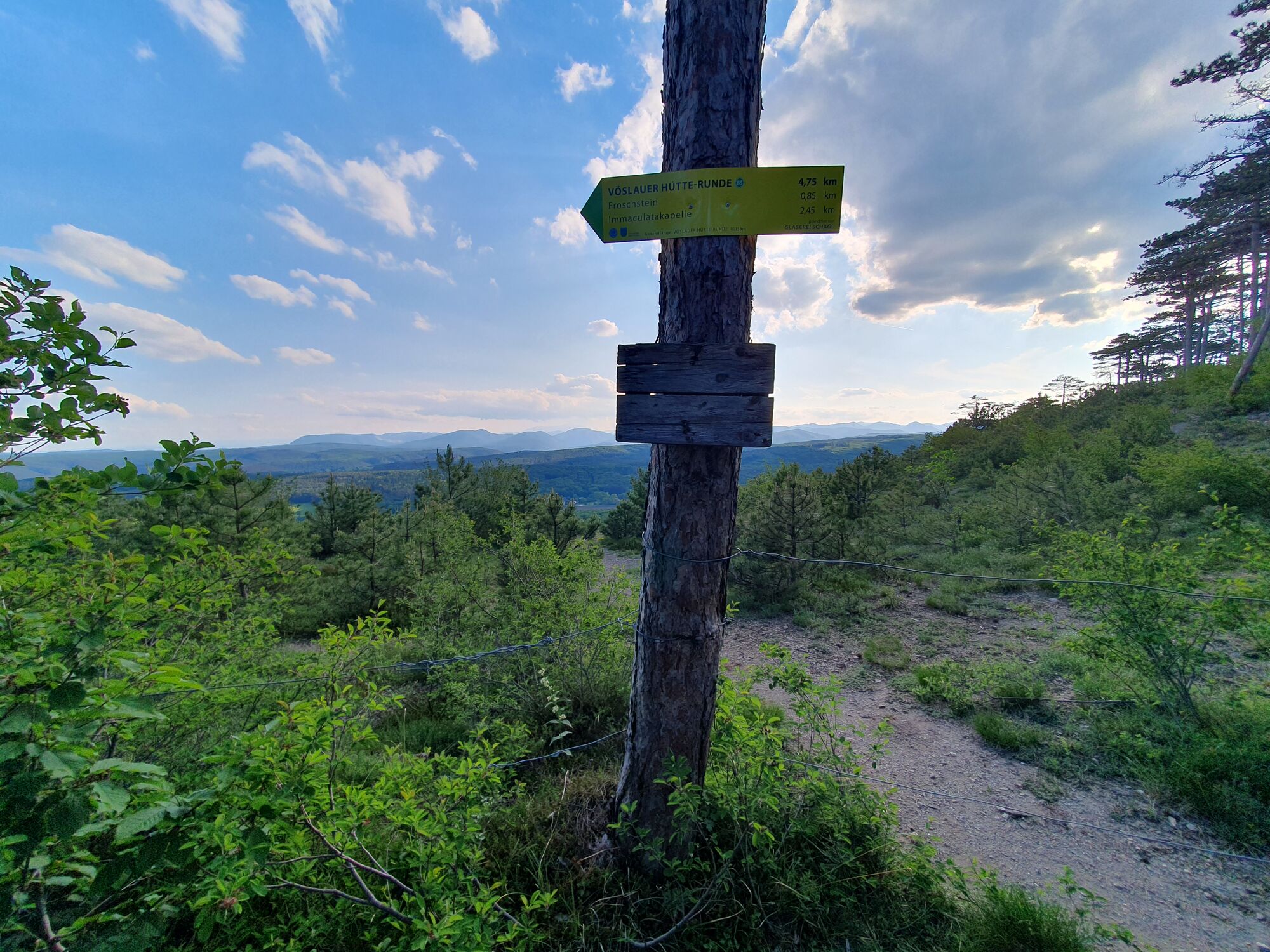 Park the car below the tennis court and follow wild, partly stony, steep scree paths to viewpoints at the edge of the quarry, with beautiful south-west views. Then towards Vöslauerhütte to the nearby ‘summit cross’, and on unmarked paths to the edge of another quarry. Then along the edge of the quarry down to the Froschstein, and finally on the ‘Sonnenweg’ back to the car.