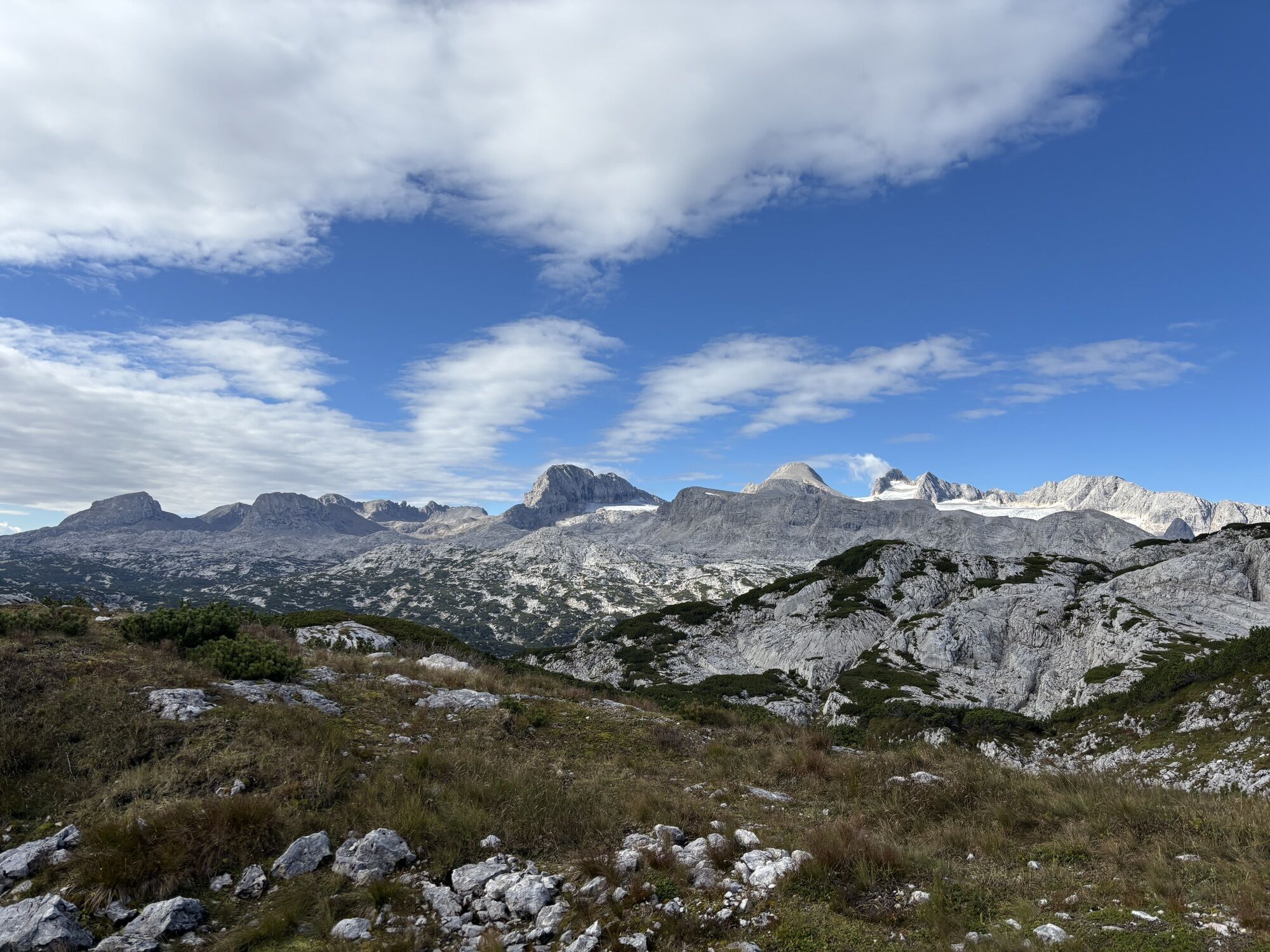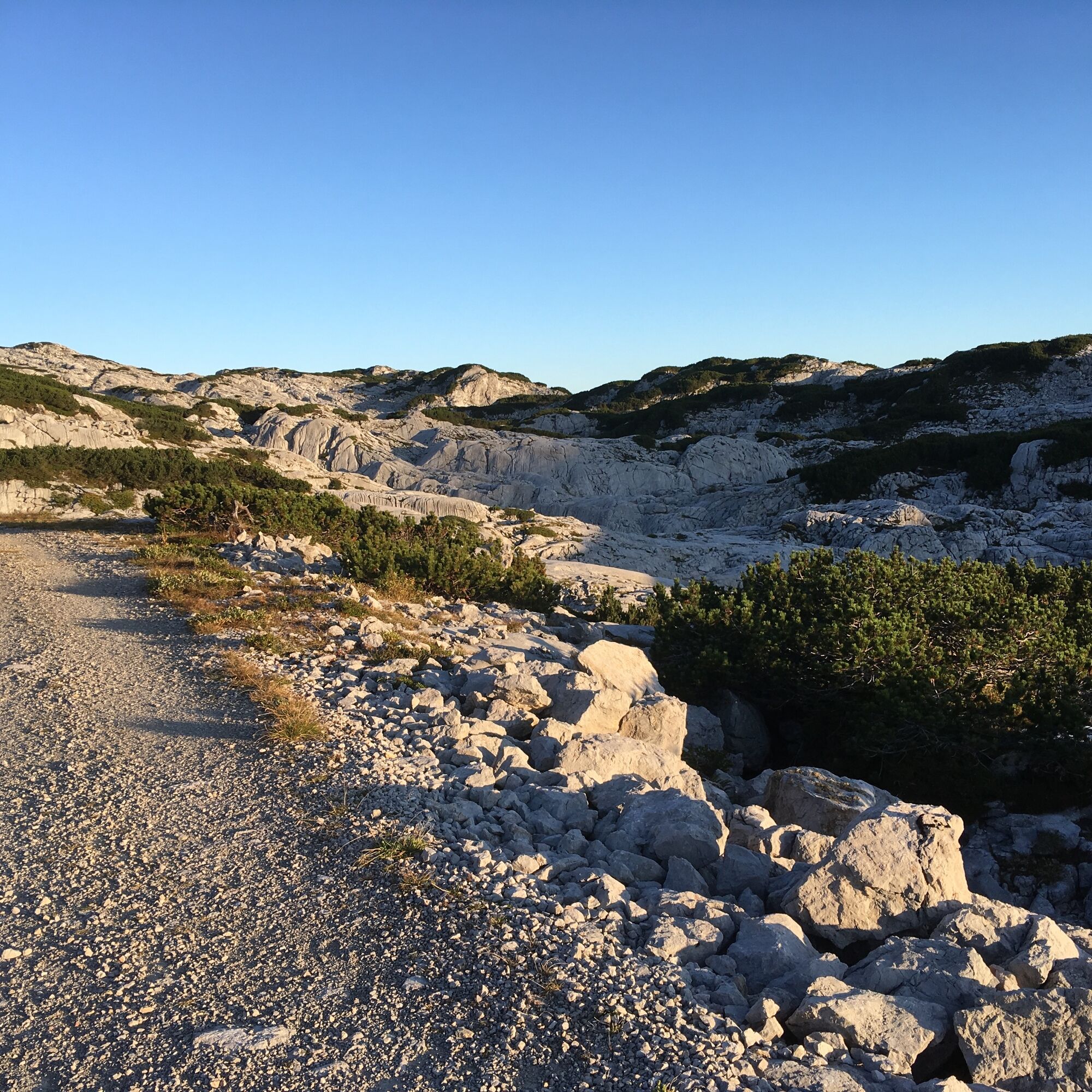 From the mountain station of the Dachstein Krippenstein cable car, the well-maintained trail leads over hilly terrain densely covered withmountain pines.