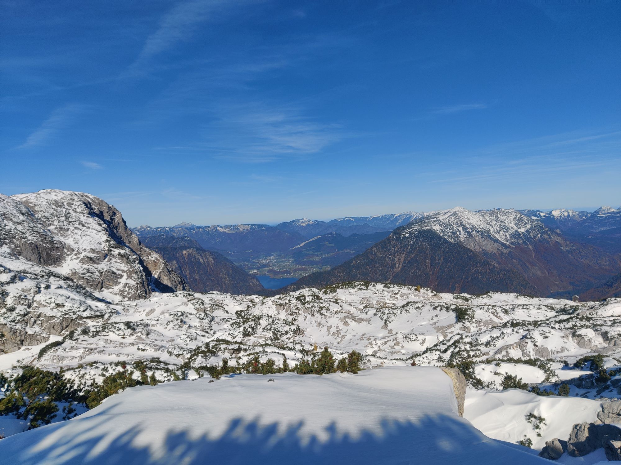 From Obertraun (510 m), the Dachstein Krippeinstein cable car takes you up 1,600 meters in altitude. At Krippenstein (2,100 m) you can look out over the immensely wide Dachstein plateau.
