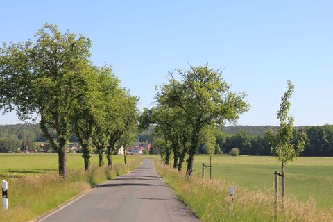 Wir folgen dann der Straße nach Dubrauke. Rechter Hand liegt das ehemalige Rittergut Baruth, wo ein Landwirtschaftsmuseum aufgebaut werden soll und eine Streuobstwiese entstehen soll. Der Weg führt uns vorbei am ehemaligen Basaltwerk. Dort kann man auf Wunsch eine Führung erhalten. Gesäumt von alten Birnenbäumen führt uns der Weg nach Neudörfel. dort entsteht eine 2 ha große Streuobstwiese, die besichtigt werden kann. Nachdem wir in Kleinsaubernitz links abgebogen sind, fahren wir rechts an der Olba vorbei weiter nach Wartha. Bei entsprechenden Temparaturen bietet sich ein kleines Bad im Olba-See an.