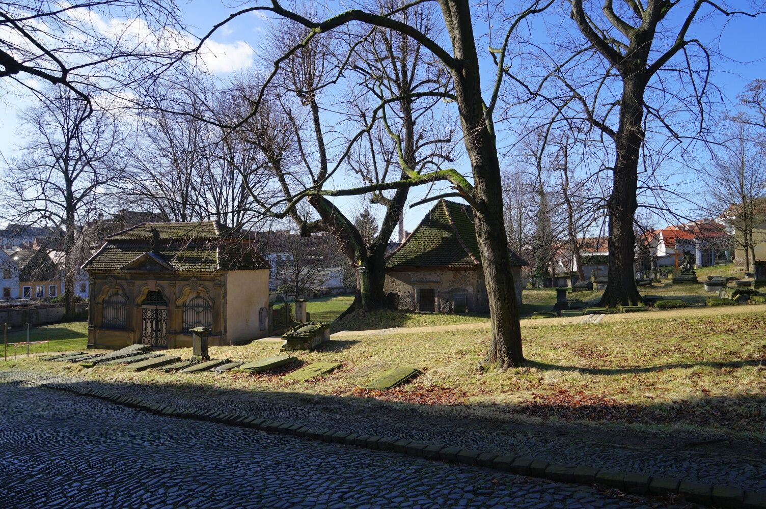 From here it is only a few steps to Villa Gobius at Peterstraße 13. Via Rosenstraße you come to Büttnerstraße and to the "Dreibeiniger Hund" inn. Then walk past the Nikolaiturm via Bogstraße to the St. Nicholas Cemetery.