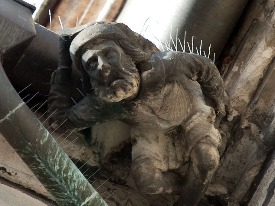 Above the entrance to St. George's Chapel you will find the sculpture of a roofer on the gutter under the eaves cornice.