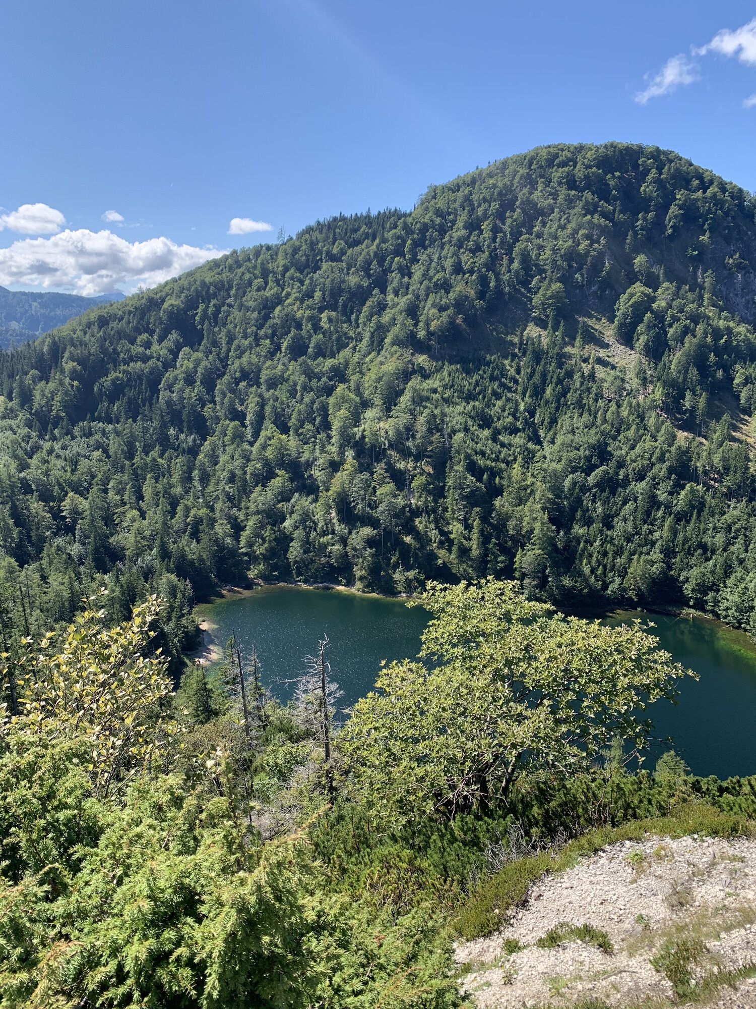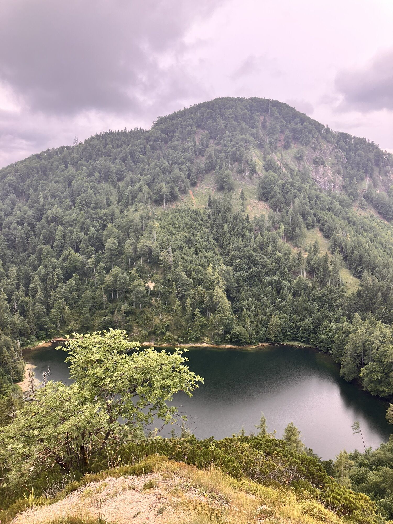Am Rückweg vom Almkogel dann Richtung Eibensee gehen und den Abstecher aufs Marienköpfl nehmen, bevor man zum See absteigt und danach den Steig zurück zum Parkplatz nimmt.