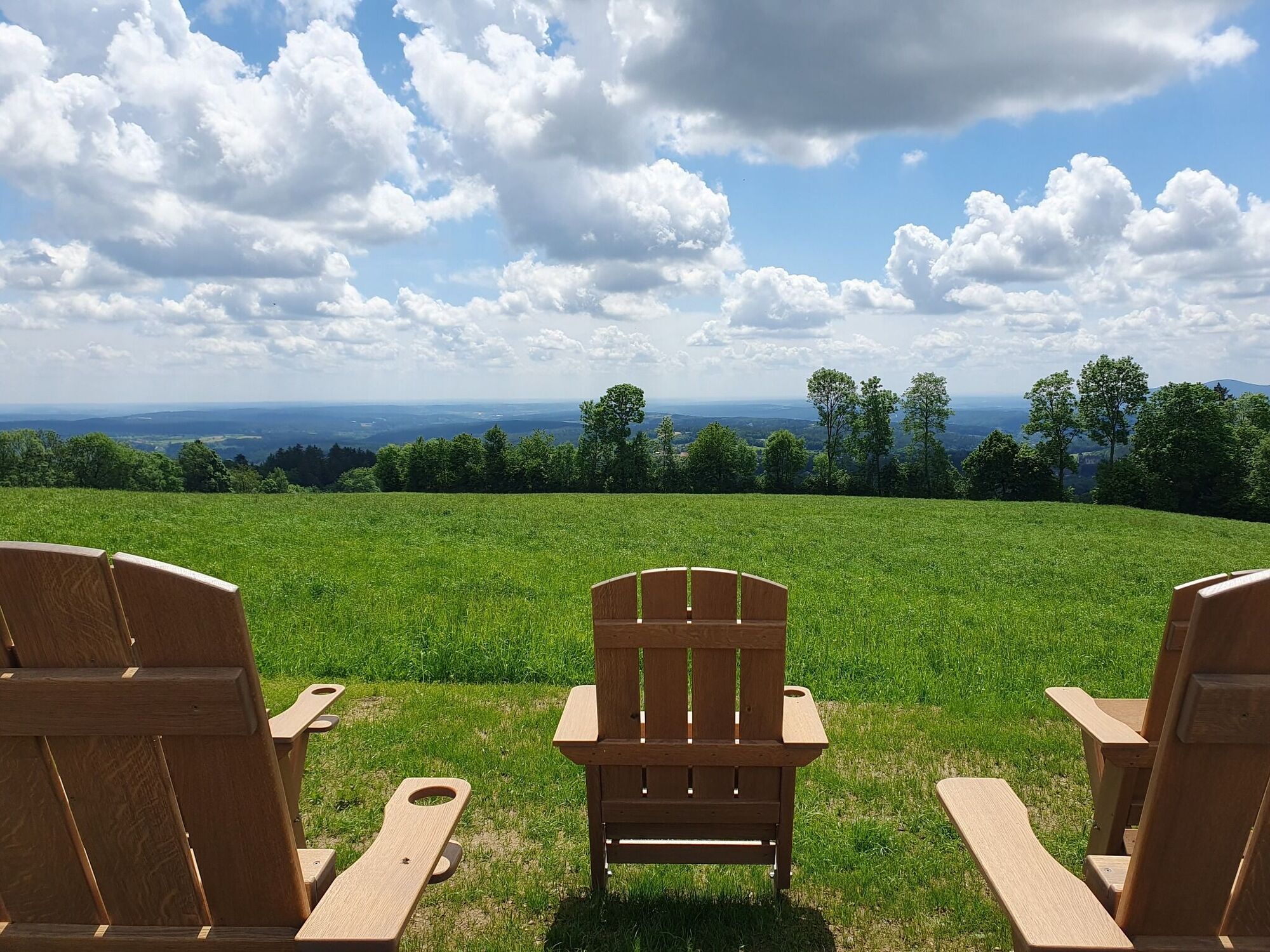 Wir fahren links in die Schwaighofstraße ein und fahren jetzt in Richtung „Schwaighof“.Es geht bergauf bis hinauf in den Ort Schwaighof. Unterwegs kommen wir rechts an der Mutter-Theres-Kapelle vorbei.Bei der Kapelle in Schwaighof (Herz-Jesu-Kapelle) biegen wir links ab.Auch an der nächsten Kreuzung halten wir uns links.An der nächsten Kreuzung biegen rechts ein, in Richtung „Hilmtor/Panoramastüberl“.Nach ein paar Metern fahren wir wieder rechts und halten uns an den Wegweiser zur Fa. Volt-Austria.Jetzt geht es einige Kilometer immer bergauf in Richtung „Hilmtor“, das letzte Wegstück ist nicht mehr asphaltiert, aber problemlos befahrbar.Beim Hilmtor können wir jetzt bei der originellen Hilmbar ein geistiges Getränk genießen.Wir fahren geradeaus weiter durch den, immer in Richtung „Dechantskirchen“. Bald haben wir auch wieder freien Ausblick in die Landschaft.Kurz vor einer Wiesenkapelle biegen wir links hinunter in Richtung „Dechantskirchen/Bergen/Flourl’s Schenke“ ab.Wir halten uns immer rechts und fahren in Richtung „Stögersbach“.Bald kommen wir an der Abzweigung zu rechts hinunter vorbei, die sich für eine Einkehr empfiehlt. Vor uns liegt jetzt die ganze Oststeiermark, wir haben einen wunderbaren Ausblick.Gleich nach der Ortstafel „Dechantskirchen“ biegen wir links ab („Tennisplatz“) und fahren den Karnerweg hinunter ins Ortszentrum von Dechantskirchen, ein kleiner Ortsrundgang mit Besuch der Kirche ist eine schöne Unterbrechung der Tour.Beim Gemeindeamt biegen wir links ab und fahren, vorbei an der Volksschule, entlang der Landesstraße nach Stögersbach.Weiter geht es auf der Landesstraße (Radweg R12), vor uns sehen wir schon wieder Friedberg.Bei einem Bildstock biegen wir links hinauf in Richtung „Maierhöfen“ ab.Oben im Ort biegen wir rechts ab und fahren den Radweg hinaus bis nach Friedberg.Dort biegen wir rechts wieder in die „Schwaighofstraße“ ein und fahren zurück bis zum Thonet-Museum, dem Ausgangspunkt der Tour.