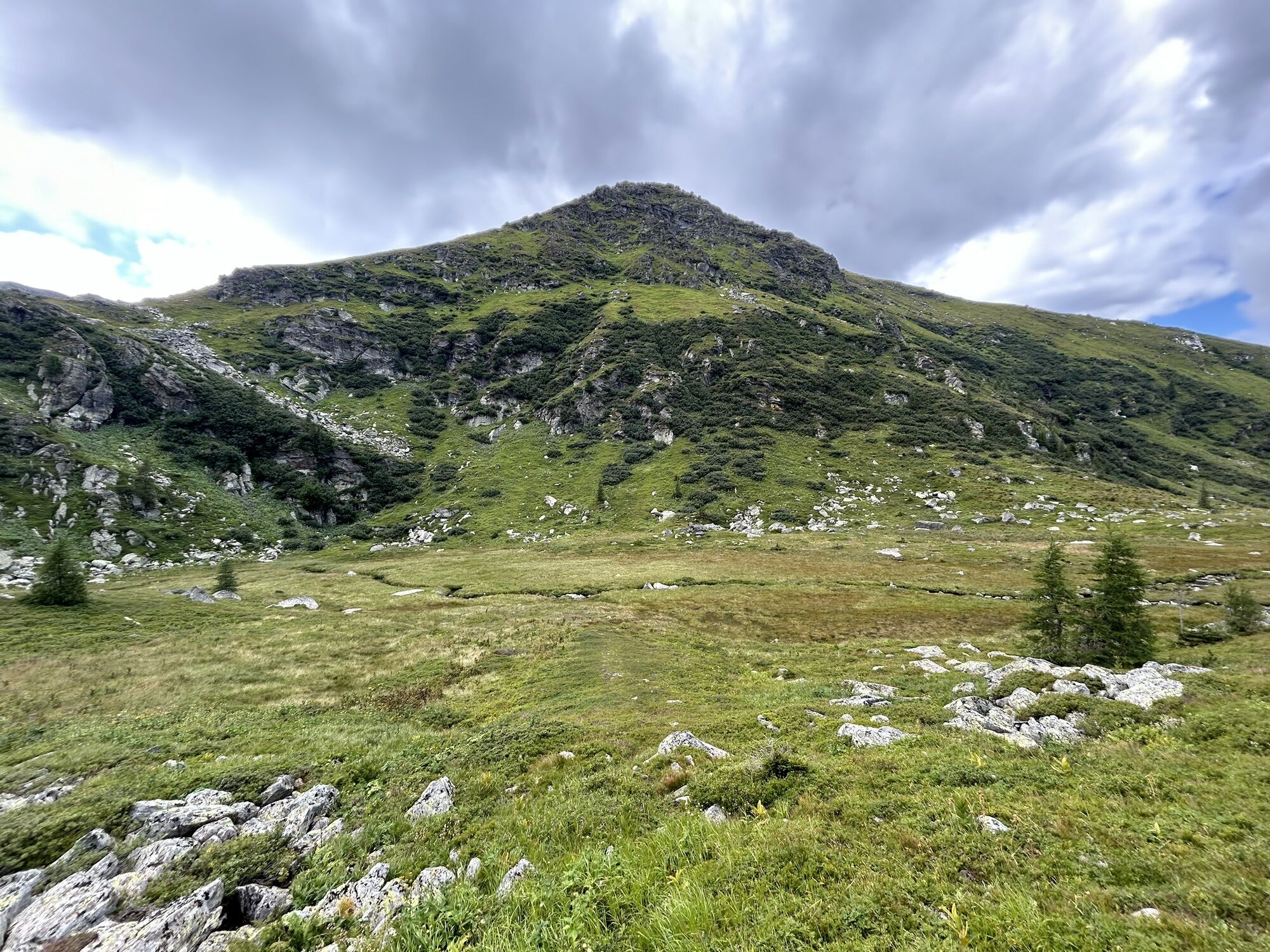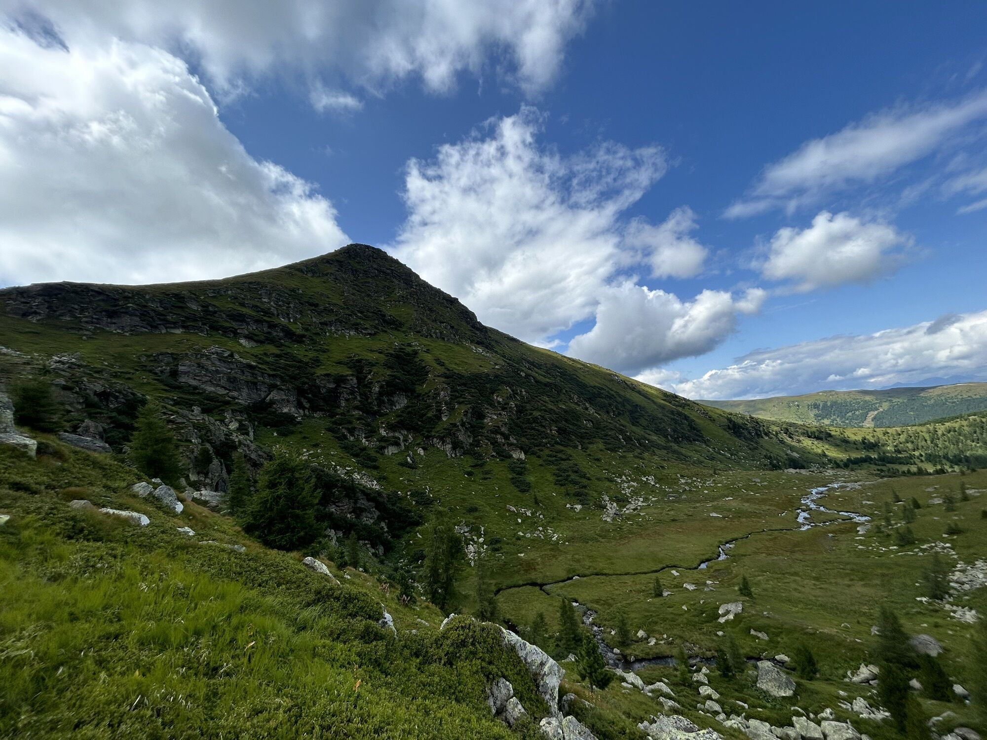 Wir starten beim großen Parkplatz unterhalb der Winterleitenhütte. Nach wenigen Höhenmetern bergauf kommen wir zum Naturfreundehaus Winterleiten (1782 m) und sehen unser Ziel, den Kreiskogel bereits vor uns. Wir halten uns links und folgen dem Steig rund um den See, der direkt zum Großen Winterleitensee (1840 m) führt. Der gut sichtbare Weg führt über den Bach, vorbei an einem kleinen Holzhaus und weiter entlang des Wanderweges 315a über den breiten Bergrücken bis zur Wegkreuzung Ochsenlacke. Wenig später erreichen wir den Gipfelbereich des Kreiskogels (2306 m). Den Abstieg wählen wir über den steileren Steig in Richtung Ochsenlacke und weiter gemütlich bergab entlang der Karböden zurück zum Ausgangspunkt.