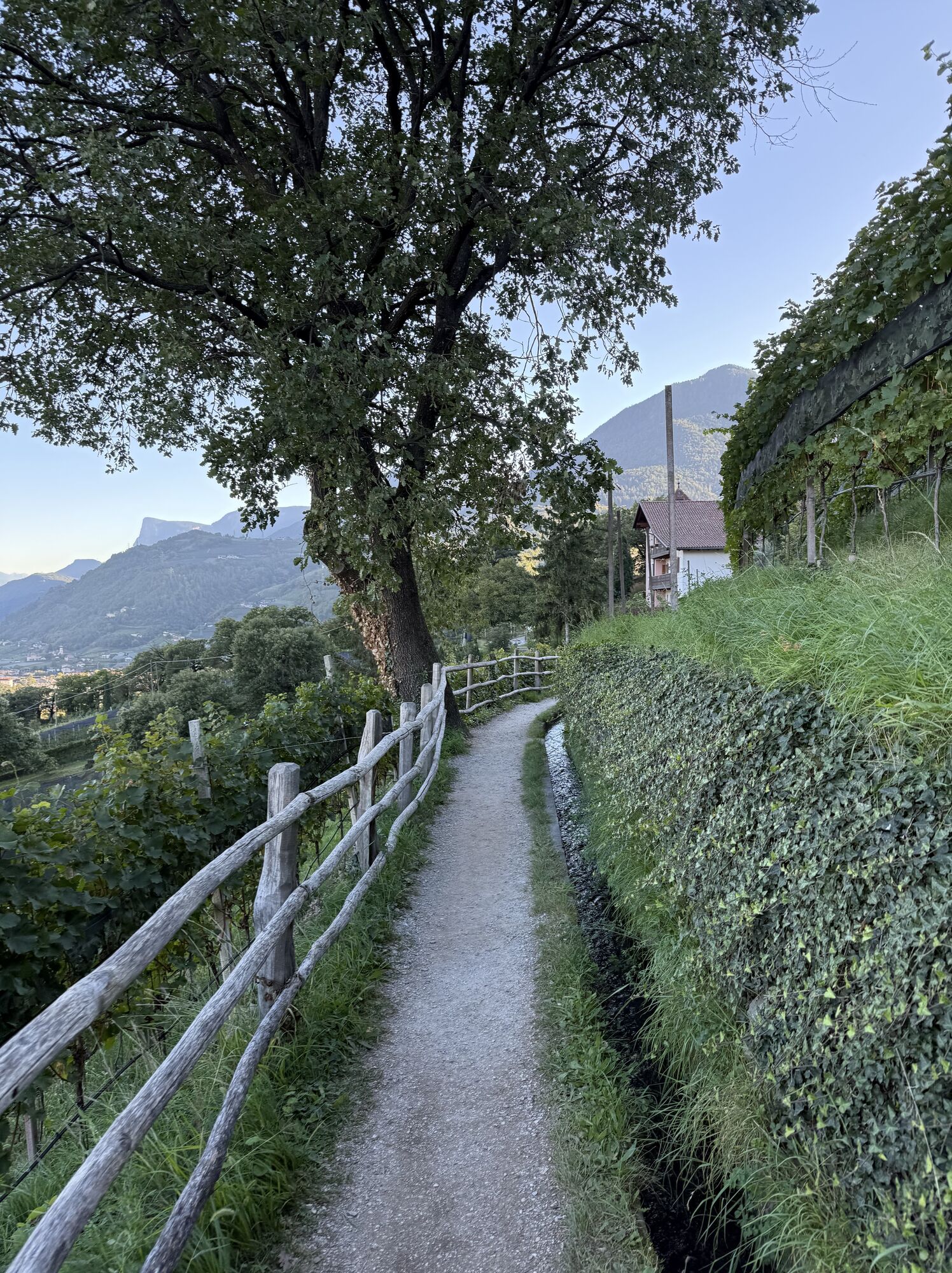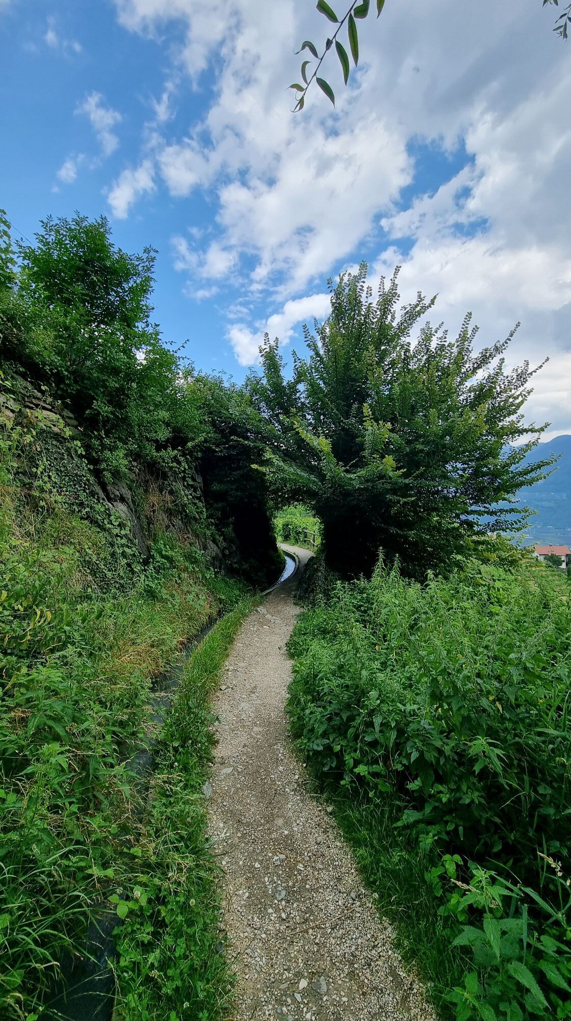 Ein gerader teils sonnig und schattiger Spazierweg entlang des Marlinger Waal