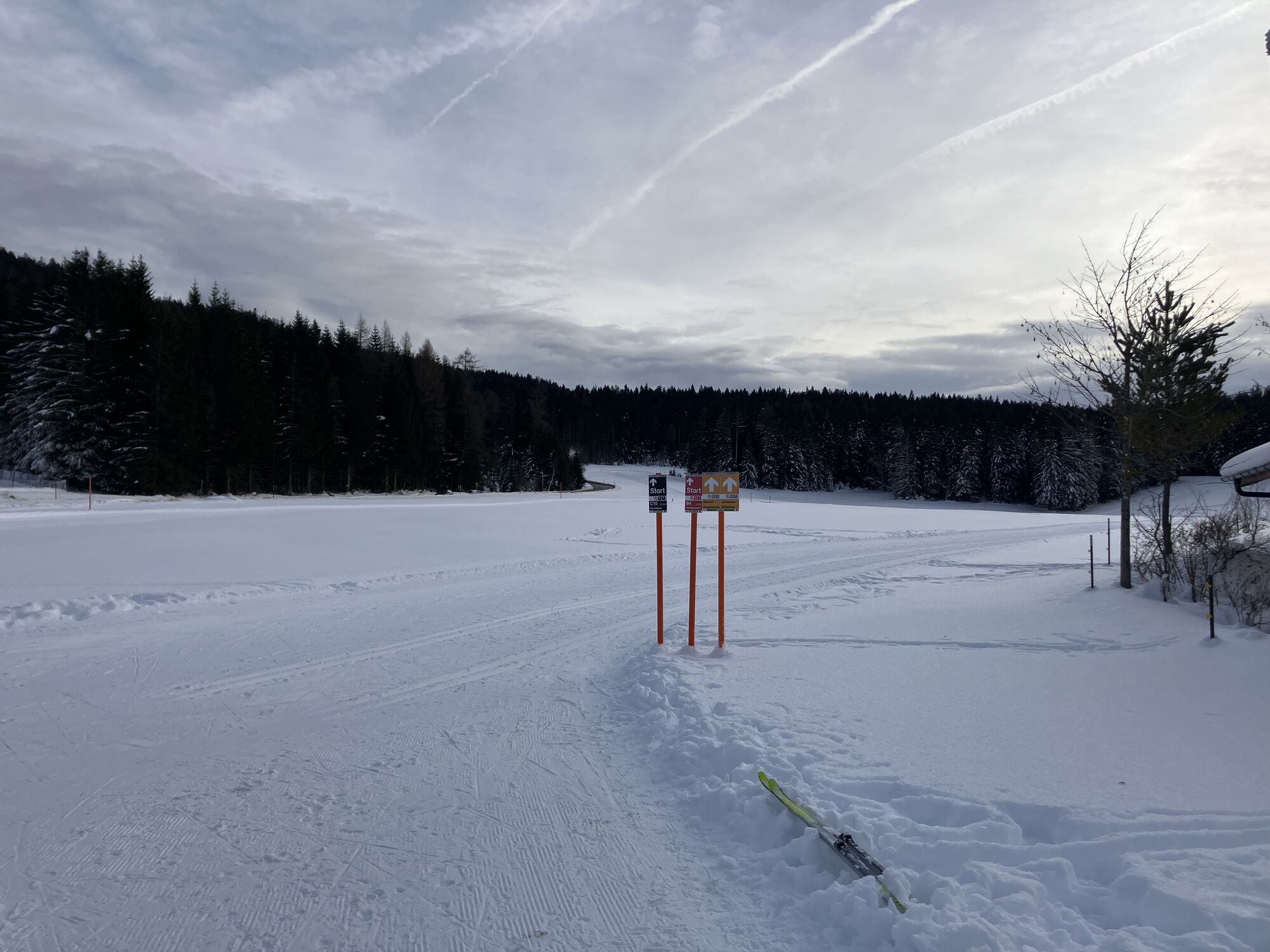 Bei wenig Schnee wird im ersten Teil der A5-Loipe die westlich gelegene Rückloipe auch für den Hinweg im Gegenverkehr eingerichtet. Einkehr entweder beim Hinweg oder Rückweg auf halber Strecke in der Nähe...