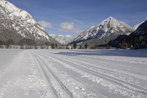 Ebene Strecke, Skating und klassisch gespurt. Für Familien geeignet.