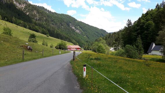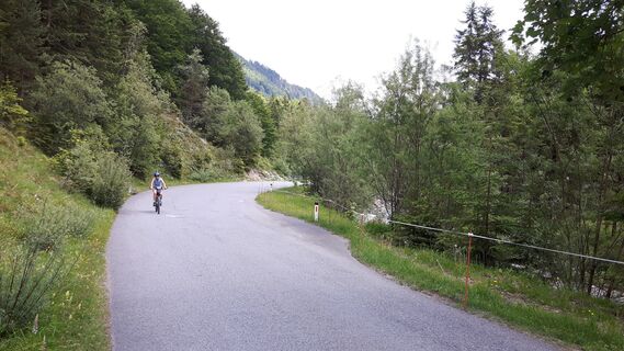 Start ist in Griesenau, Kaiserbachtal, an der Mautstelle (bei. ca. 730m). Der Mautstraße ca. 4,5 km / 290 hm folgen und man hat die Griesner Alm erreicht. Die Straße zieht sich insgesamt in gemäßigter Steilheit (unter 8 %) zur Alm. Lediglich die letzten 300-400 m vor der Alm wird die Straße etwas steiler. Hier habe ich den Vivax-Assist Antrieb meines MTB´s eingeschaltet, da ich nicht zu verschwitzt auf der Hütte ankommen wollte.