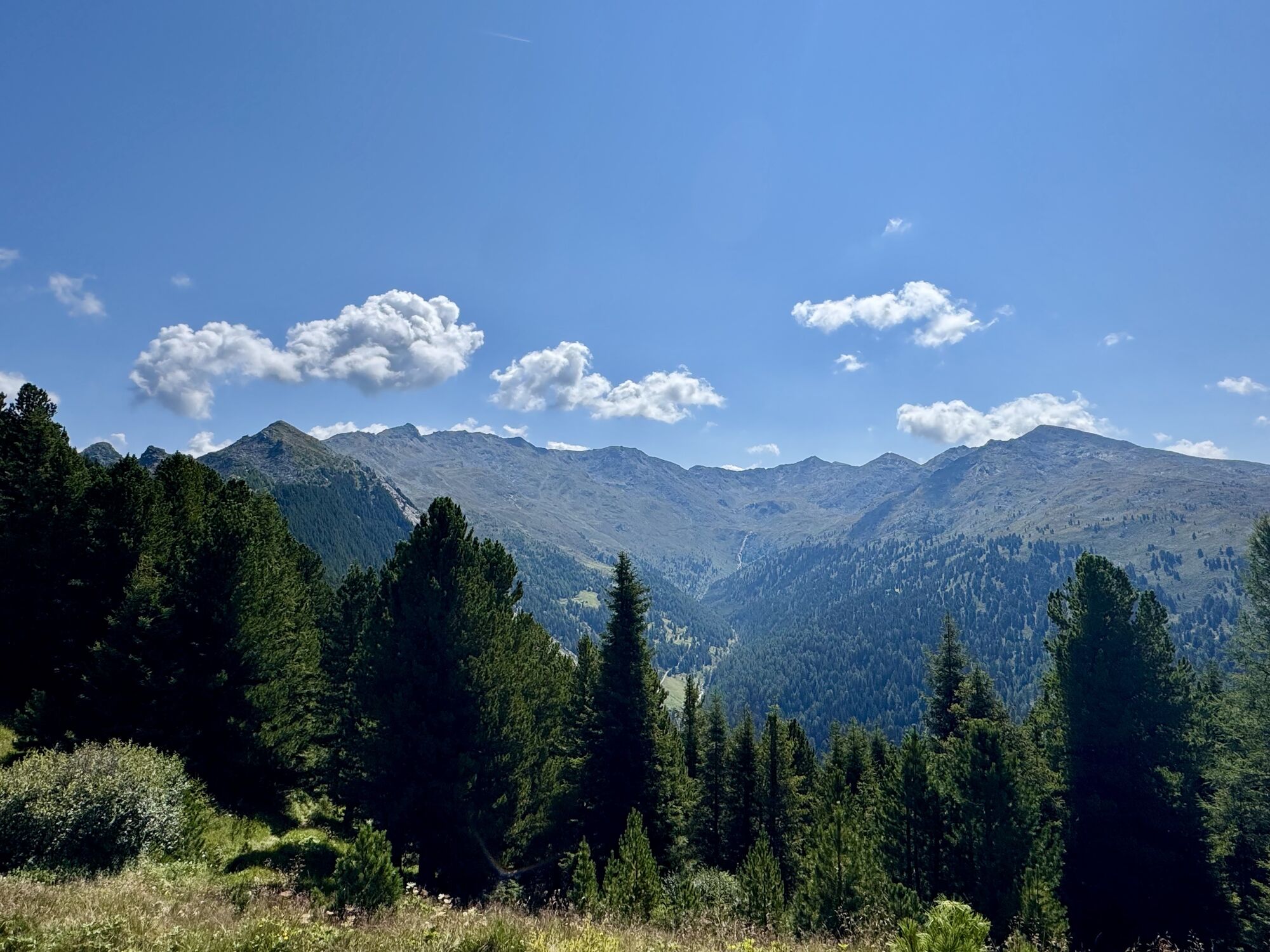 Von Boscheben in gleich bleibender Richtung weiter und nördlich unterhalb der kleinen Gipfel bleiben (nirgendwo ins Tal absteigen). Auf dem Steig hinüber zur Tulfeinalm und von dort in wenigen Minuten ein paar Meter empor zum Halsmarterlift. Der Zirbenweg verläuft nach Boscheben leicht an- und absteigend jedoch ohne wesentliche Höhenänderung entlang bzw. knapp über der 2.000-Meter-Marke – in der Regel etwas oberhalb der Waldgrenze, jedoch nicht im baumfreien Gebiet (Zirben!).