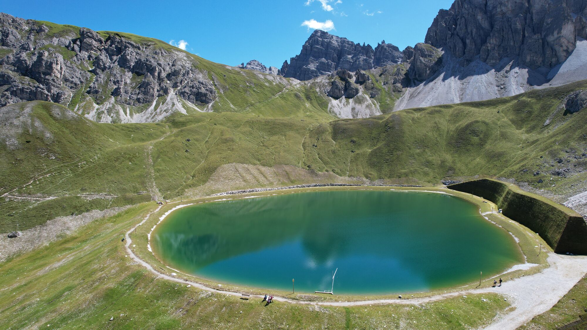 Tolle Wanderung für die ganze Familie. Stets das herrliche Panorama der Kalkkögel vor Augen führt die leichte und familientaugliche Route von der Mittelstation der Hoadlbahn zum Herzlteich. Dabei werden in etwa 40 Minuten 120 Höhenmeter überwunden. Nach der Umrundung des Speicherteichs geht´s entweder retour zur Mittelstation oder weiter hinauf zum Hoadl-Haus auf 2.340 m.