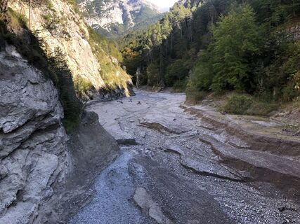 Oberhalb der kleinen Staumauer breites Schotterbachbett zum picknicken oder auch klettern.