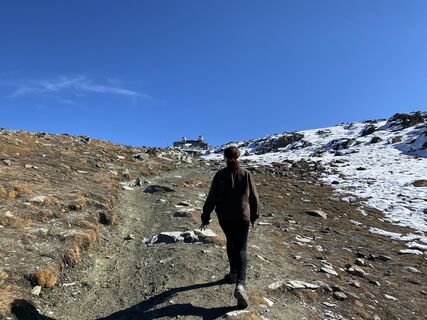 Mit der Zermatt - Gornergratbahn bis zur Riffelalp fahren und dann denn Anstieg in Richtung Riffelberg, dann weiter zum Rotenboden und zum Schluss der Aufstieg zum Gornergrat.
