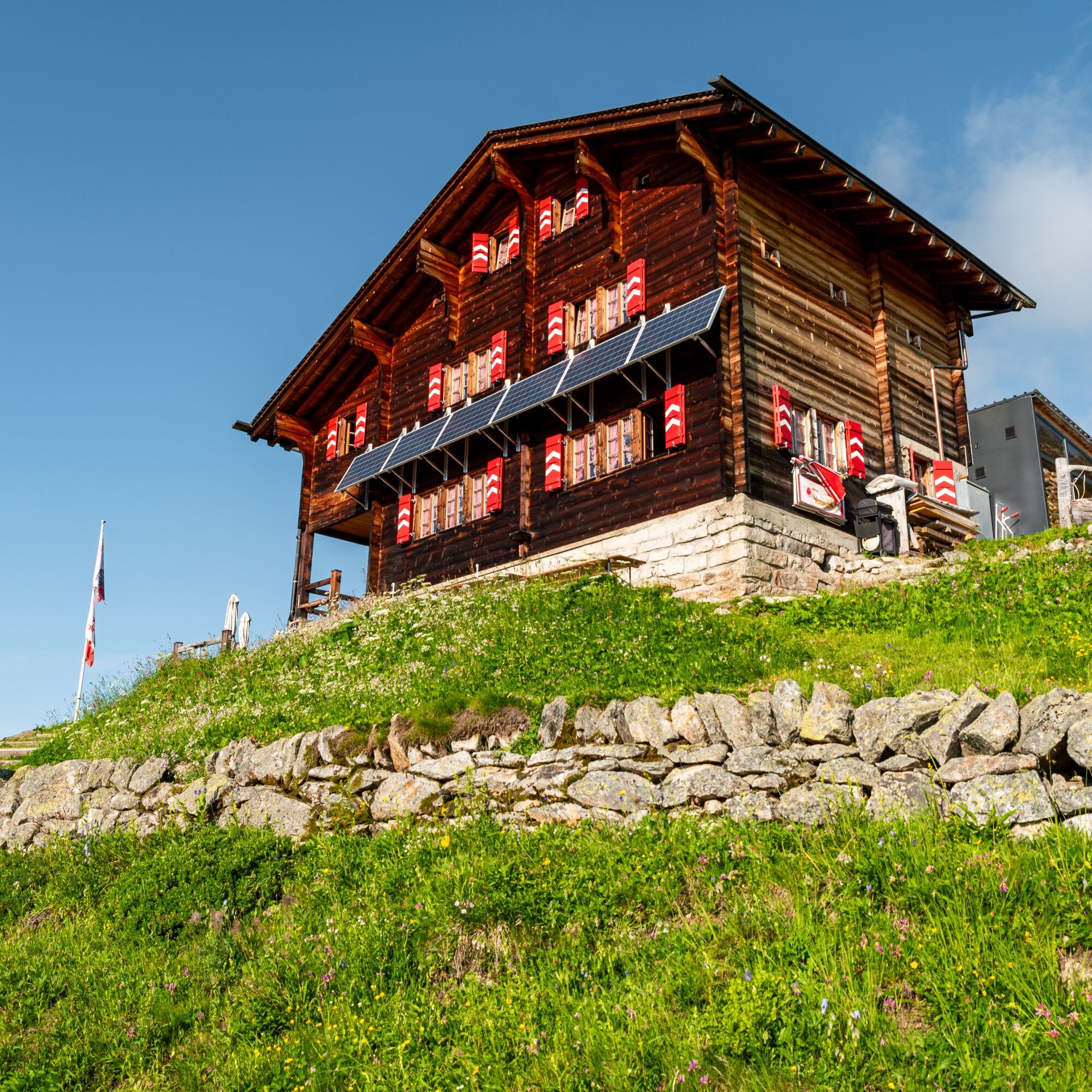 "« At Alpje and Hitte stands us brown larch wood, this is the longest far and wide, yes surely it is such pride »", so it sounds in the song of the Ski-Club Münster sung in the cozy Valais dialect. The Galmihornhütte is inevitably and majestically located on the route of the wonderful mountain route on the program today.